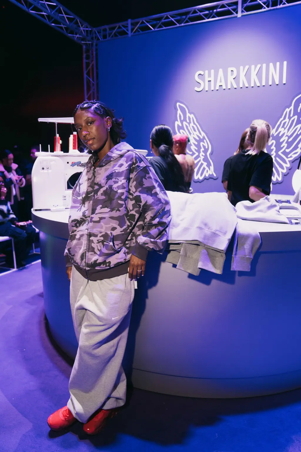 The queue for the Wings Factory was non-stop. Emblazoning grey Nike tracksuits with Sharkkini’s iconic, avian emblem, the station – conceived by designer Sharkkana – was a testament to the power of women-led streetwear design.
