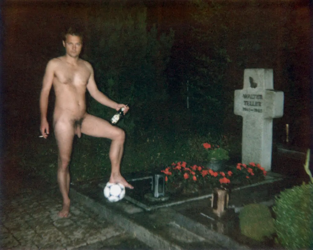 There are touching, almost diaristic moments in the book, too. One particularly striking image sees Teller standing naked by the grave of his dad, who took his life in 1988. They had a turbulent relationship, with his dad being a heavy drinker and abusive to his mum, who Teller was very close to. His dad was very musical, playing five instruments, while his mum was sporty, well into football. He got the sporty side from his mum, not so much the musical stuff.