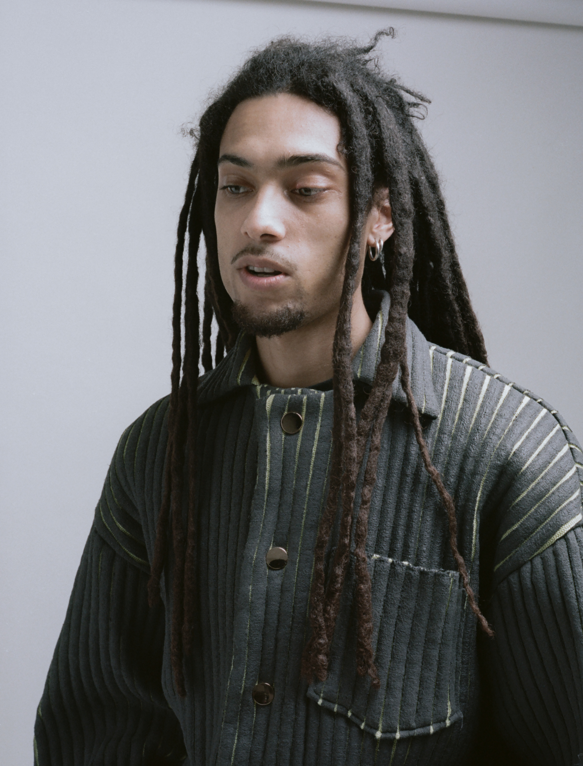Stanley wears jacket STANLEY RAFFINGTON and earrings talent’s own