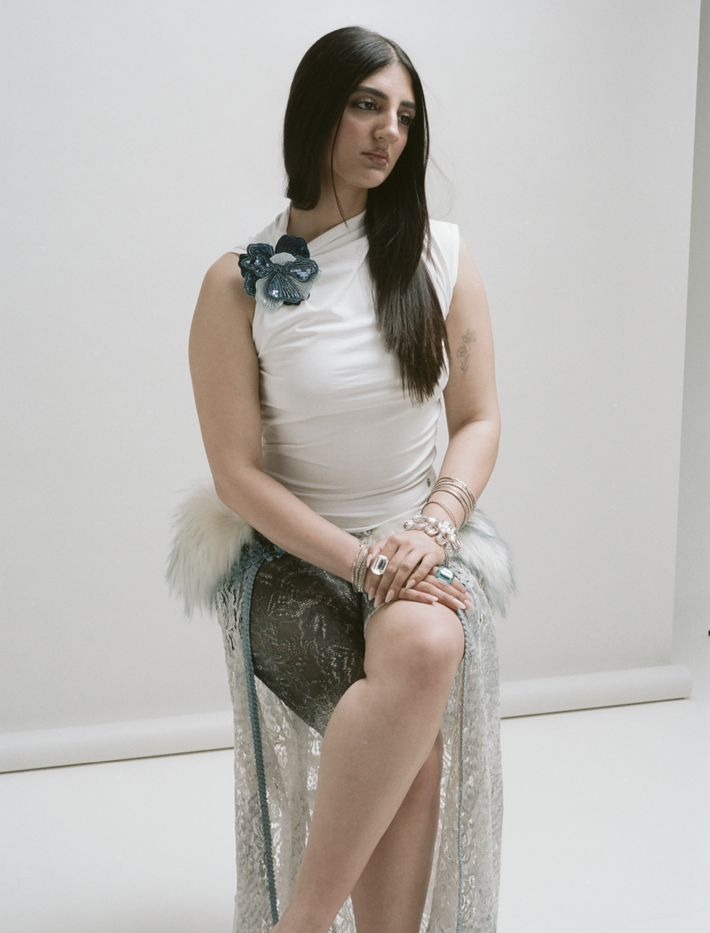 It took a while for Bea Dero to find photography. Starting off as an actor in her early teens, the North West Londoner leaned into directing at 18. “I applied to one university [UAL], one course [Film Practice], and said: ‘If I don’t get in, I’m not going.’” She did get in, but by her second year she had switched to Art Direction, concentrating on photography. Still, the meandering path paid off, giving the 23-year-old’s images a rich, narrative-filled vision. Her debut solo exhibition, Bound by Two Homes, held at London’s Hackney Gallery back in March, spotlit her heritage through portraits of young Iranian women in London with objects celebrating their culture. “There’s a lot of [internal] hate for [our] British side. But I’m hoping to shift the perspective and celebrate that [dual identity].” Now, Bea’s returning to her roots, directing a short film focused on a British-Iranian girl and her friends. “It’s easy for diasporic people to dream about going back home. But this film explores how we can bring that warmth and presence to where we are now.”