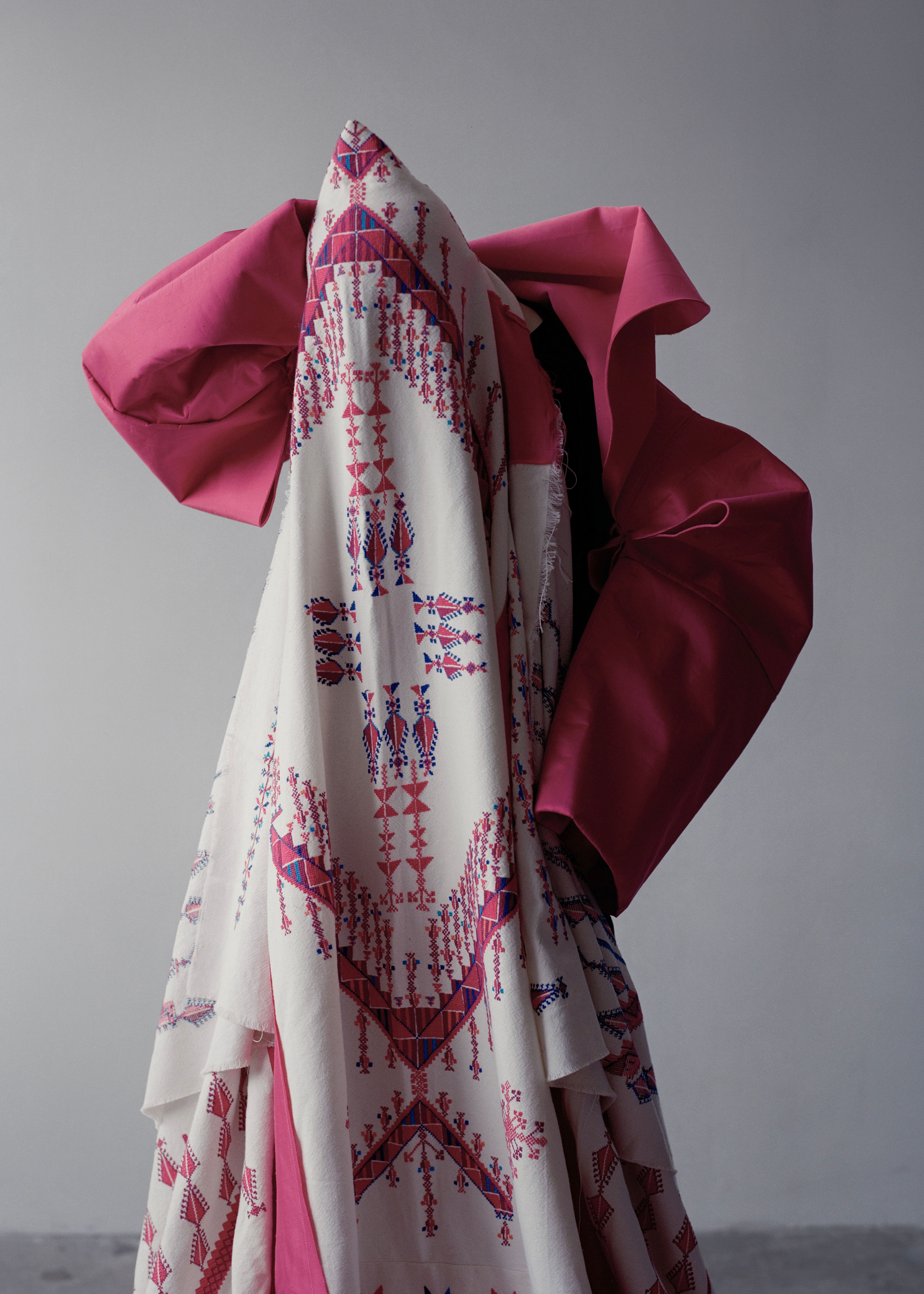 It was Lady Gaga’s McQueen Armadillo heels that proved to be Ayham Hassan’s fashion awakening. Growing up in Ramallah in the West Bank, he first saw the ankle-breakers aged 12, and it sent him into a rabbit hole of McQueen collections. “Even though I was in a small city with a lot of troubles,” the 26-year-old says, “I related to how you can discuss really severe topics in an exciting way [through clothes].” Ayham enrolled in a design course at Palestine’s Birzeit University before earning himself a place on Central Saint Martins’ Fashion BA. Recently debuting his final collection, a ruffled and draped bouquet of patterned fabrics, the designer wrote “Divest Now” on the outstretched palms of his models to protest against the show’s sponsorship by L’Oréal. The result? A collection signifying “resilience, resistance, rebellion and punk”.
