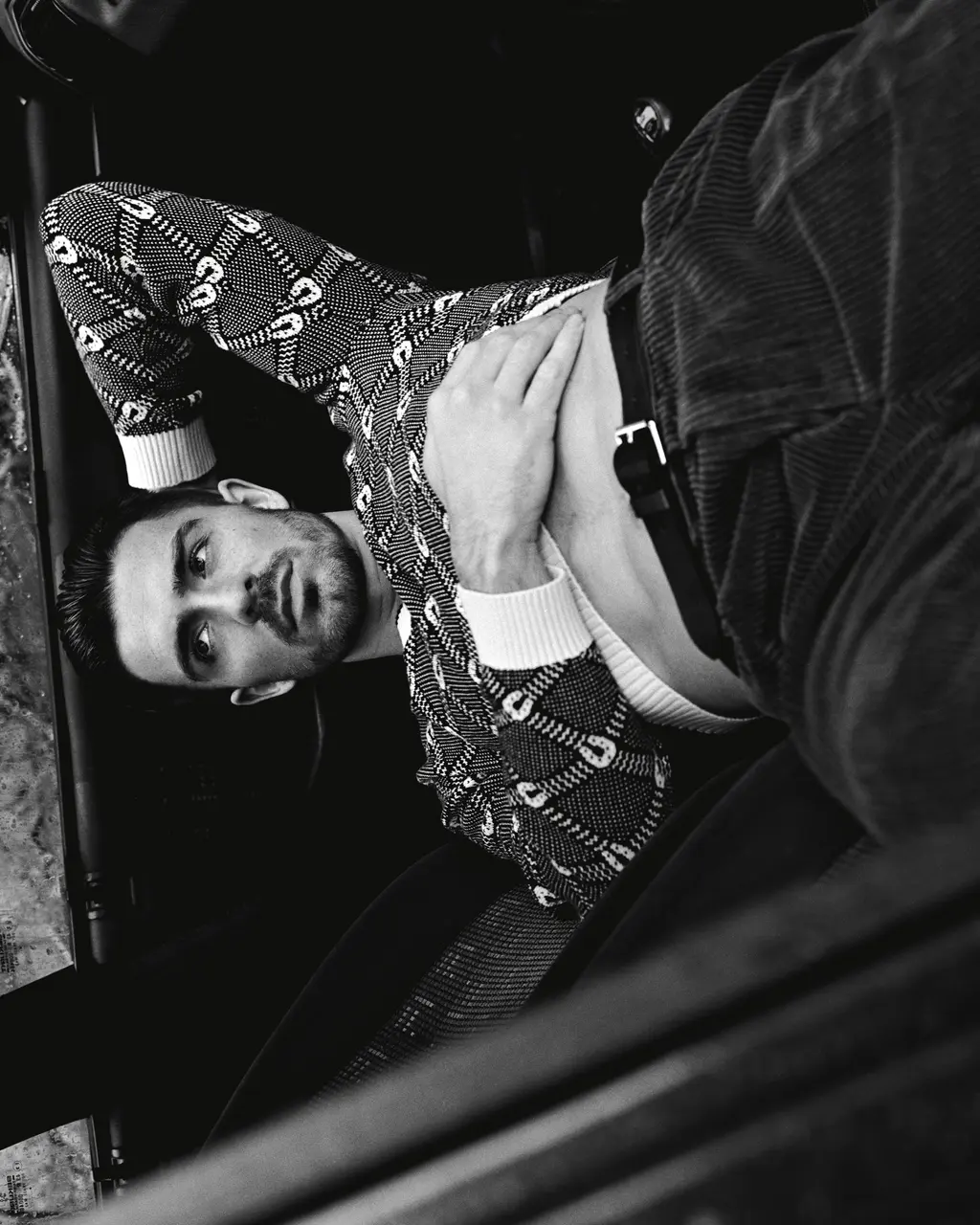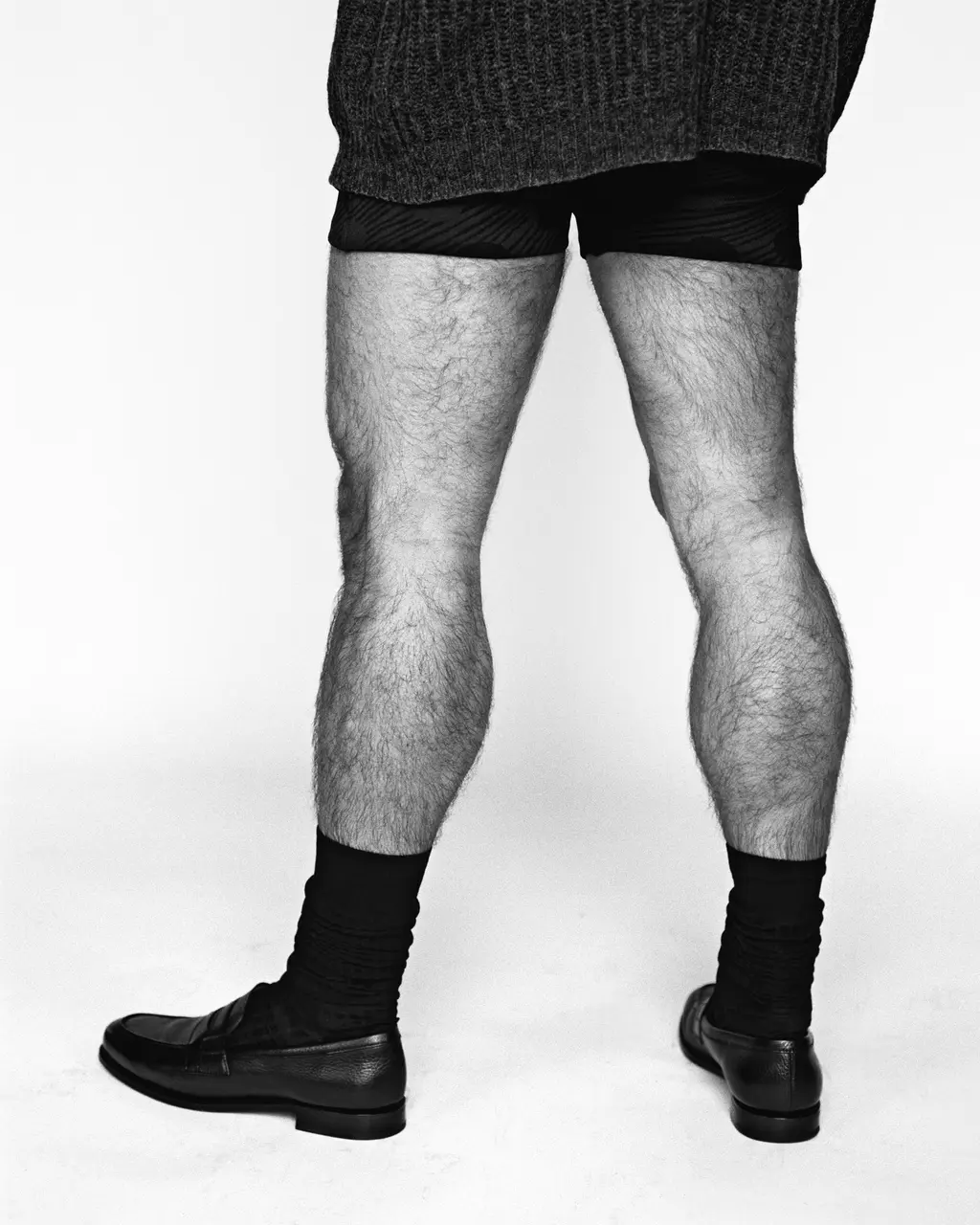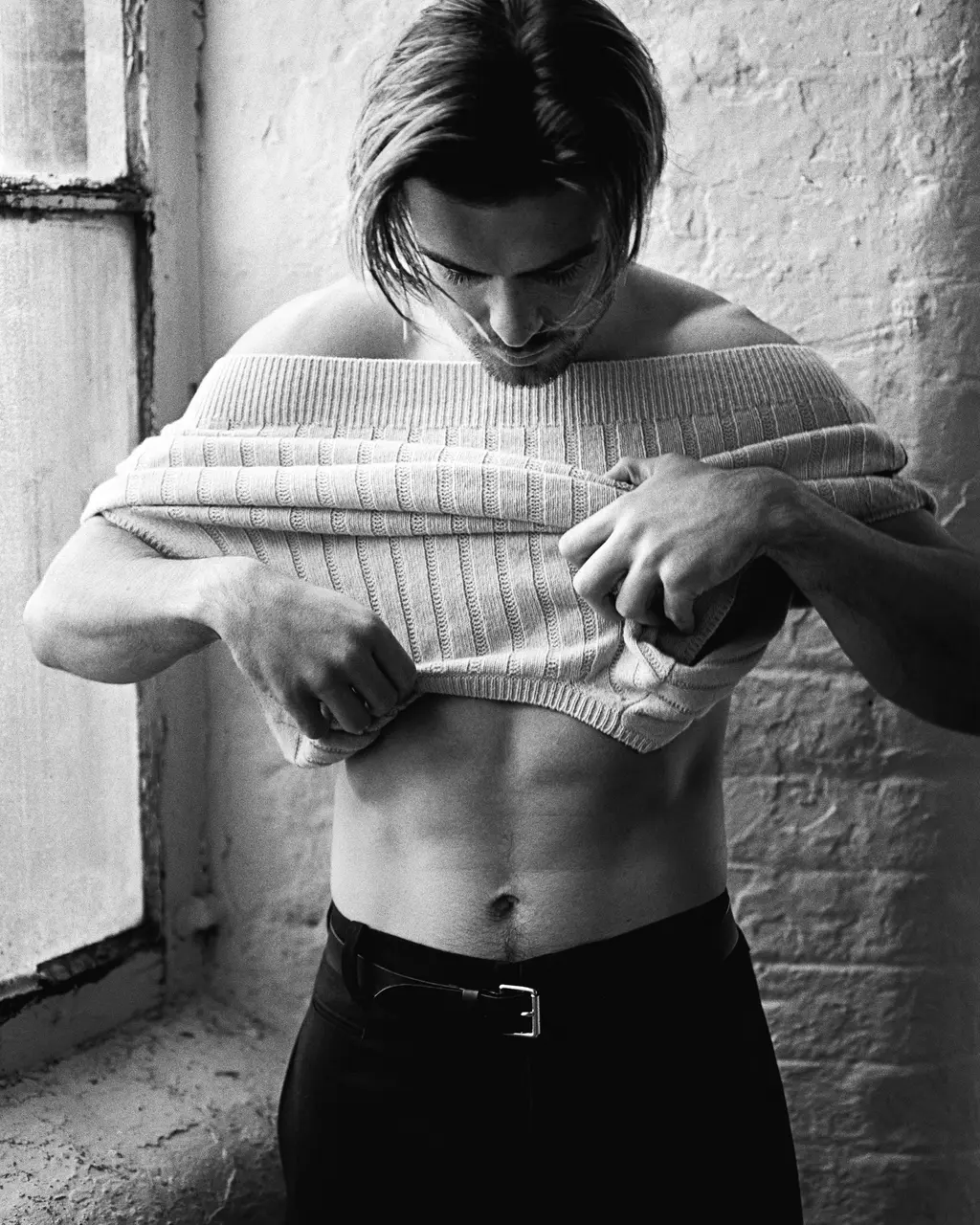 He seems comfortable, scoping out the vast studio that happens to have a freestanding Victorian bathtub in one corner and a chaise longue in the other. After courteously asking when the interview will take place, his agent asks if he’s hungry.