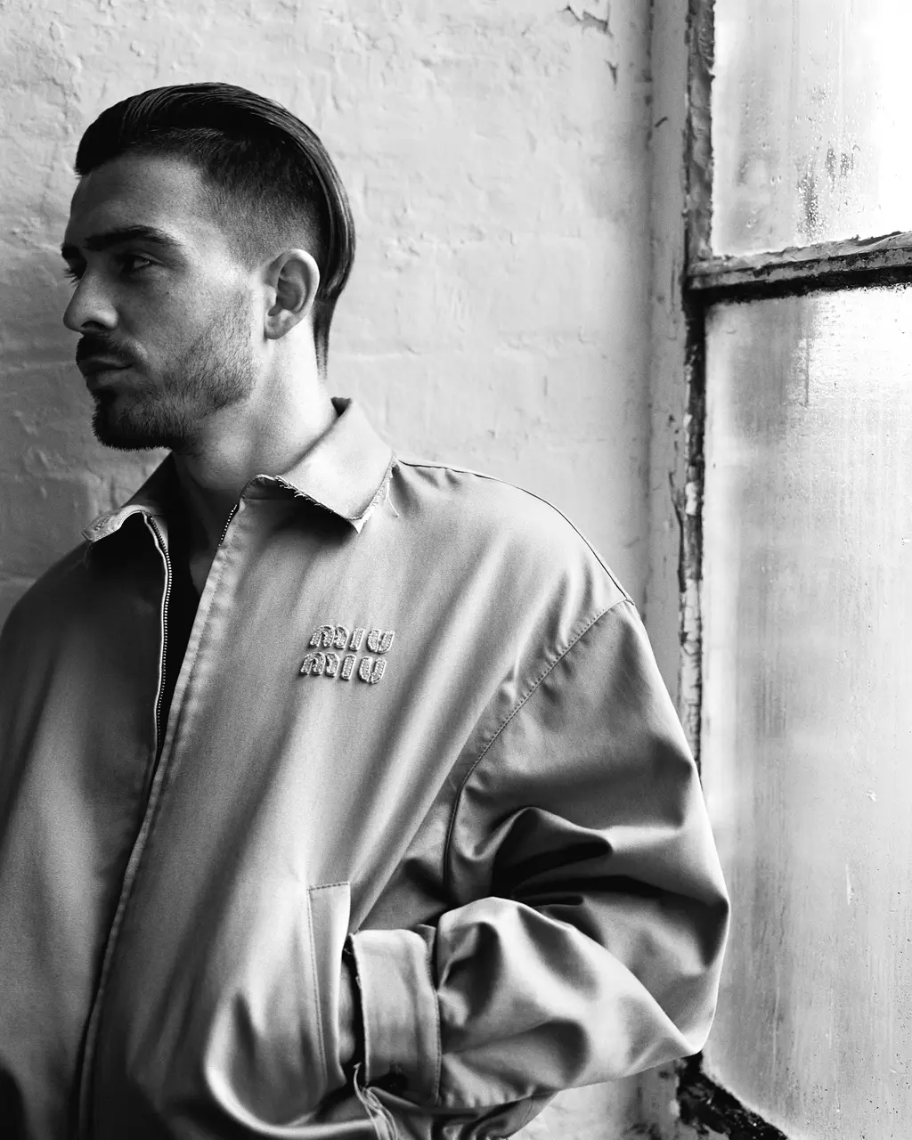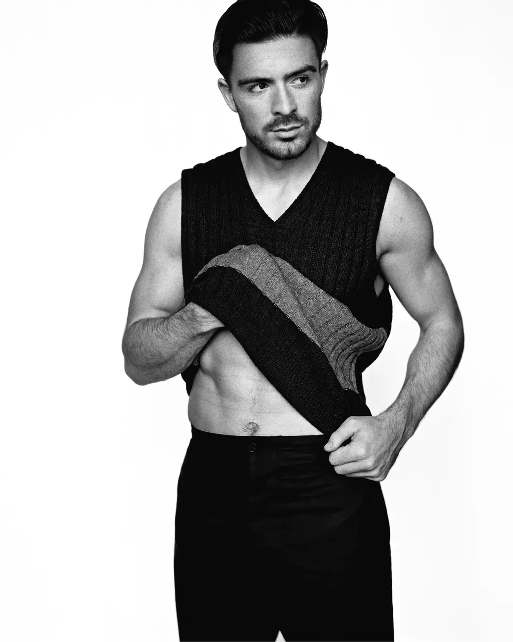 “C’mon, let’s go for it,” Grealish says, striding towards the photographer. For one shot, he’s asked to lie on the floor, which he does without hesitation, playing to the camera by batting his Bambi-esque eyelashes and either pouting or flashing a toothy smile. He knows his angles and how to turn on the smouldering sex appeal without trying too hard.