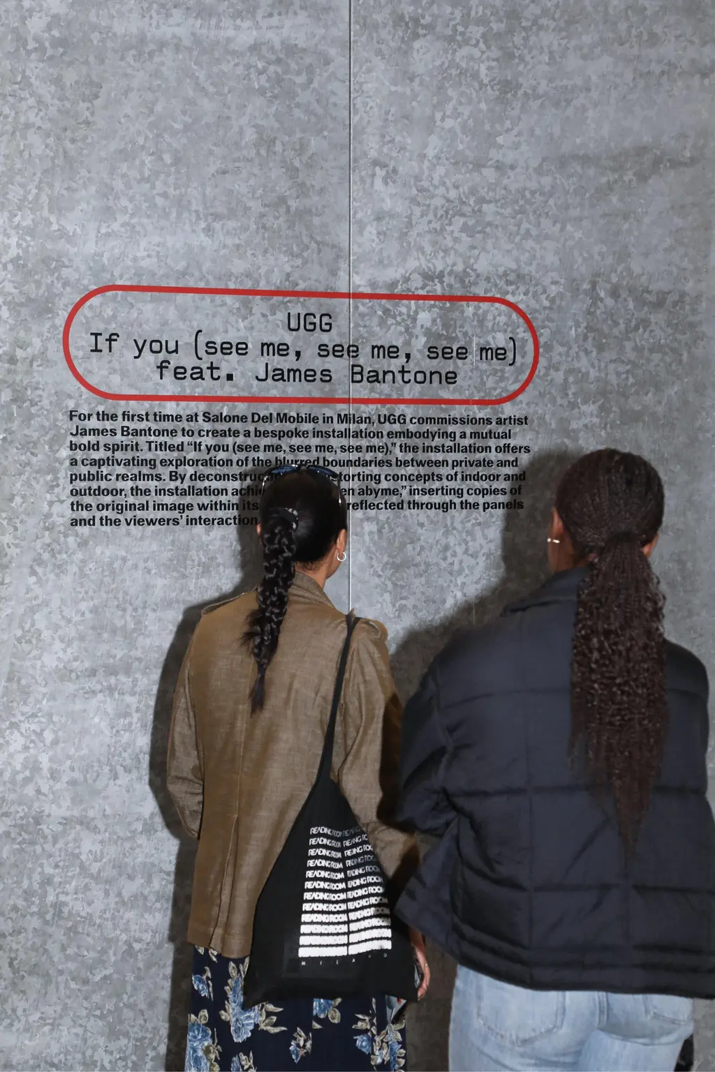 Titled If you (see me, see me, see me), James’ installation explores the blurred lines between what constitutes “private” and “public” images; how perception works from the outside looking in, and vice-versa. The 31-year-old has long been an obsessive consumer of found photographs, often finding the context they’re taken in more interesting than the images themselves. Visually, the UGG collab felt like an extension of his pre-existing work.