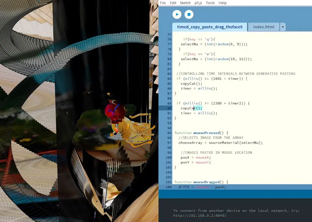 Then, comes the properly clever part. Scanning in her scraps, she gives them a quick edit in Photoshop before getting code involved, synthesising something entirely new. “I’ll bring them into the code or build a piece of code from scratch…and see what happens.”