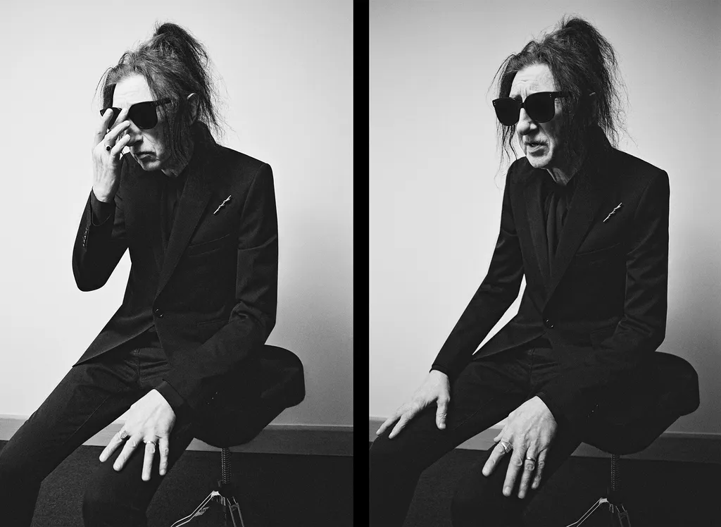 Once through the recording studio doors (today repurposed for our THE FACE photoshoot) John Cooper Clarke becomes JOHN COOPER CLARKE. In front of an audience – in this case, a small crew of people ready to dress, photograph and interview him – he’s the performance poet of rock’n’roll repute.