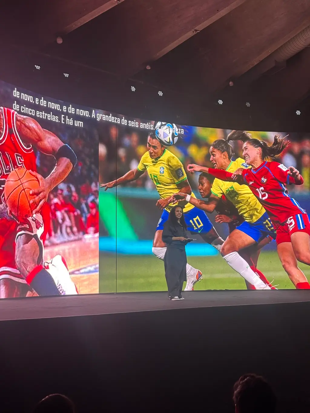 As our time together wrapped, I threw in a few quick-fire questions. Her first pair of the iconic trainers? “Air Jordan 1s. My parents wouldn’t buy me Jordans, so they became very aspirational for me,” Sarah said, coyly. Asked about her favourite player, she smiled mischievously: “Michael Jordan,” she replied, a cheeky glint in her eye. With that, I headed back to the hotel, pumped for the main event: the global unveiling of the Brasil X Jordan World Cup kit.
