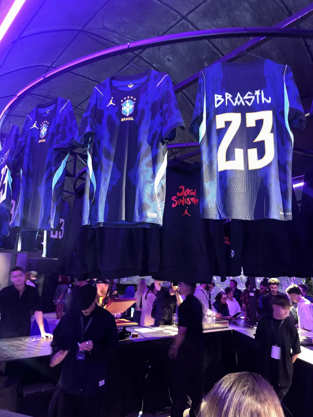 After the dancing subsided and the footballers’ kick-ups came to a halt, platforms displaying people in the full Brazil Jordan kits appeared around the room, signalling the start of the customisation station. Down a flight of stairs at the afterparty, more floor-shaking Brazilian tunes filled the space, drawing people to the dance floor, and a mini moshpit ensued after Sheck Wes performed Mo Bamba and a flurry of other hits. A hangover later, three hours of sleep under my belt, some pics I’d rather forget and new friends I surely wouldn’t, it was time to wrap up my time in Brazil.
