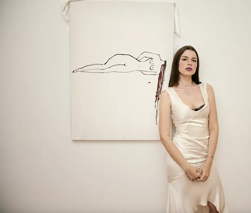 As you can probably guess by the title, Fox heavily flirted with themes of death for her debut solo art show in New York, which was inspired by a near-death overdose she experienced at just 17. Curated in collaboration with her longtime friend Richie Shazam, it also explores eroticism, fetish, and how these themes relate to rituals and sacrifices. Naturally, a key part of the exhibition was Fox smearing her own blood on silk canvases (she extracted it with a syringe). “It wasn’t as bad as it seems,” she told HuffPost. We’ll take her word for it.