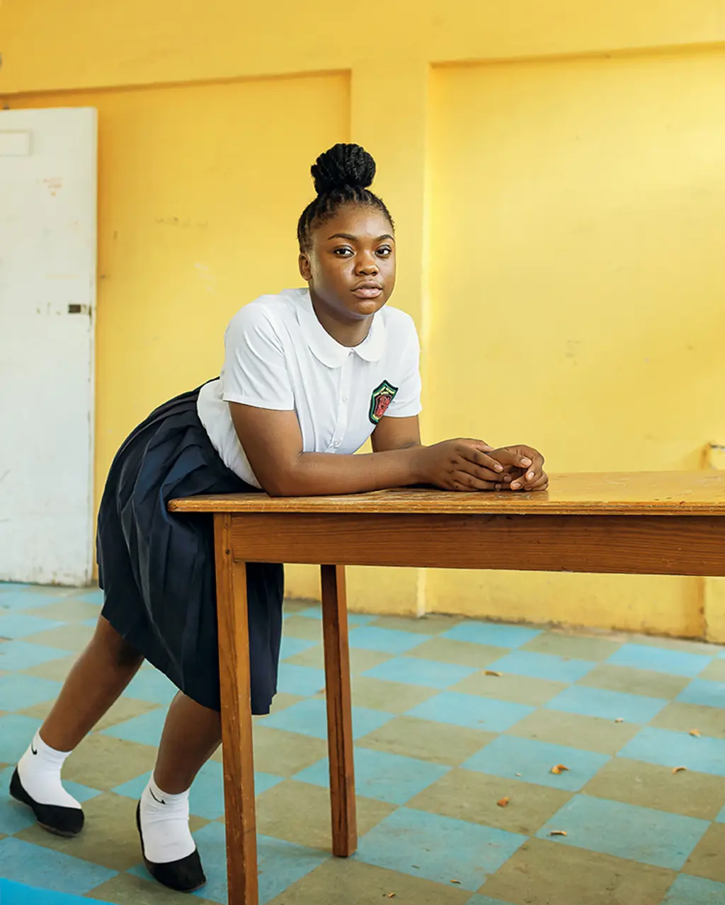 He brought those experiences back with him to Nevis and Uniform. With the Department of Education’s blessing, teachers from the island’s schools selected the kids Jeffers would shoot, with the photographer describing it as a “blind process”. His sole criteria: to include kids who don’t usually hog the spotlight.