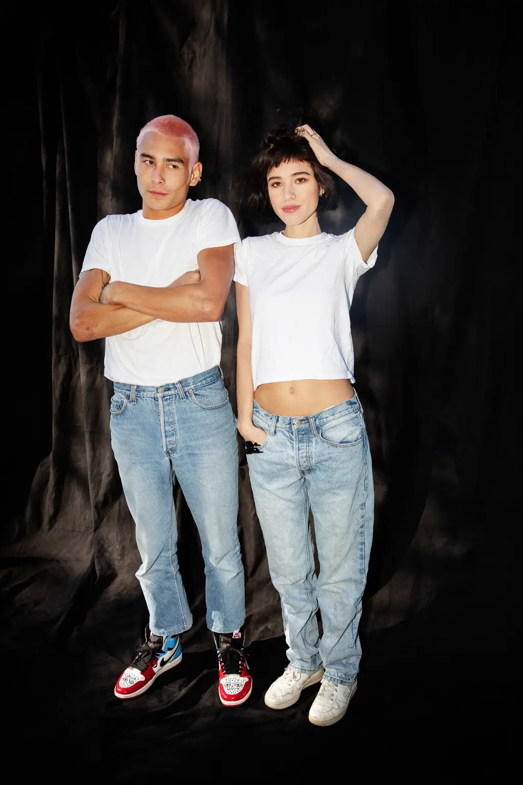 They were first introduced by that same prophetic publicist, Jamie Skinner, when they were both staying at her house in LA. “I woke up at Jamie’s,” recalls Asbille, “went down to the kitchen, and saw Evan sleeping on the couch with Jamie’s son just kind of poking him.” As it happened, Asbille and Mock were wearing similar outfits, and when Mock joined her on the set of a photo shoot, the photographer snapped an impromptu series of sibling portraits that same day of the inseparable duo. “I feel like you have this effect on everyone,” says Asbille to Mock: “to know you is to love you.”