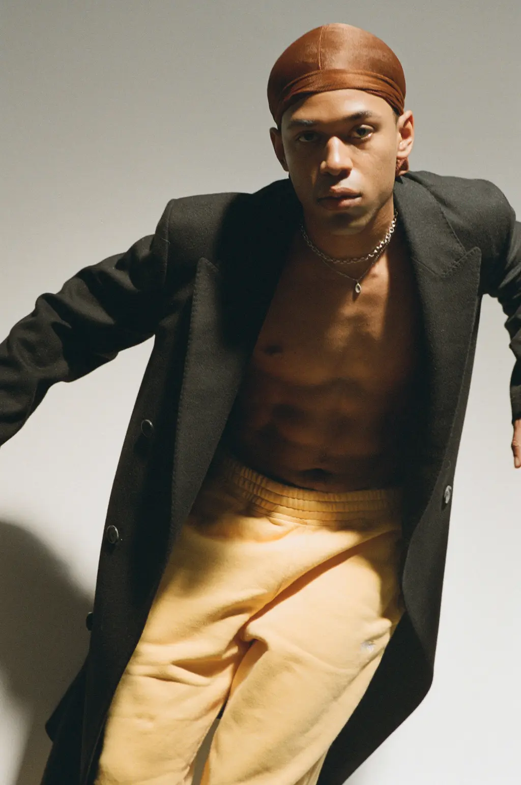 Kelvin wears jumper ISABEL MARANT, trousers STÜSSY and durag stylist’s own worn throughout