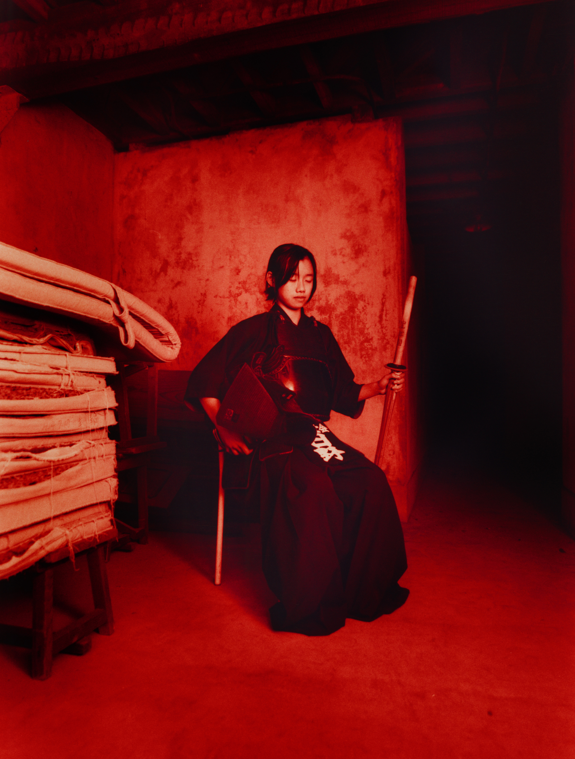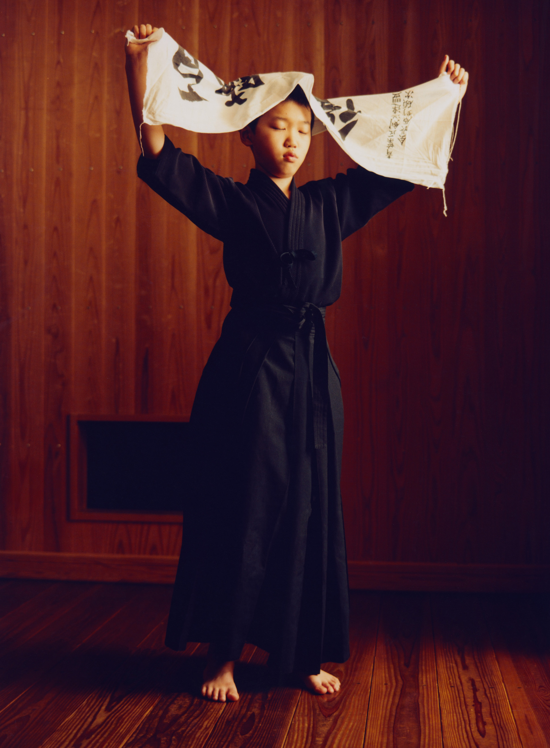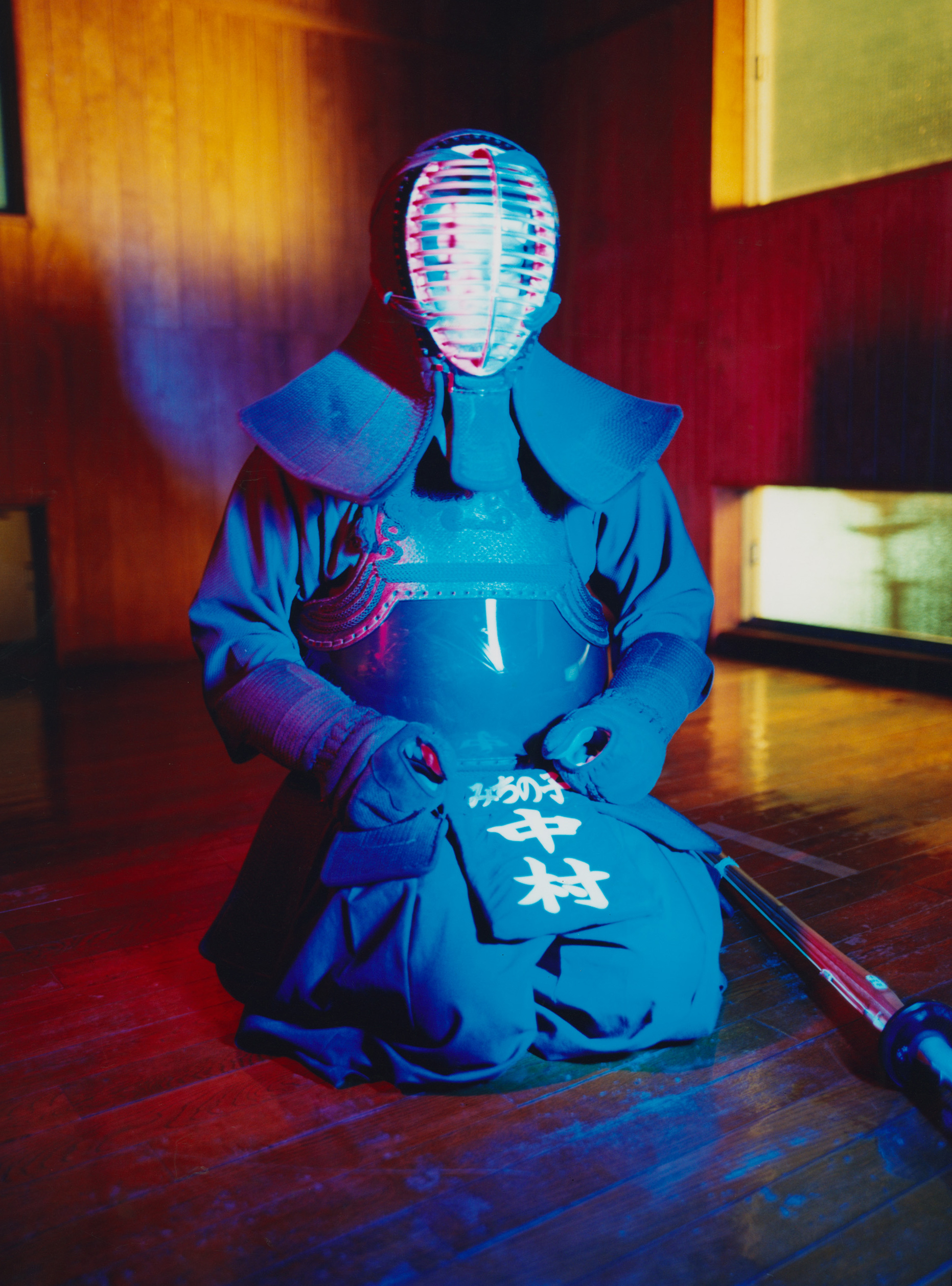 Kendo plays a large role in the lives of Japanese children. Often, they sign up for it as an extracurricular activity or it’s taught in school as part of a PE programme. It’s also a part of Japan’s police training programme, alongside judo and arresting techniques. “The first project I shot was all about chaos and disorder. This felt very order-led,” Theo says.