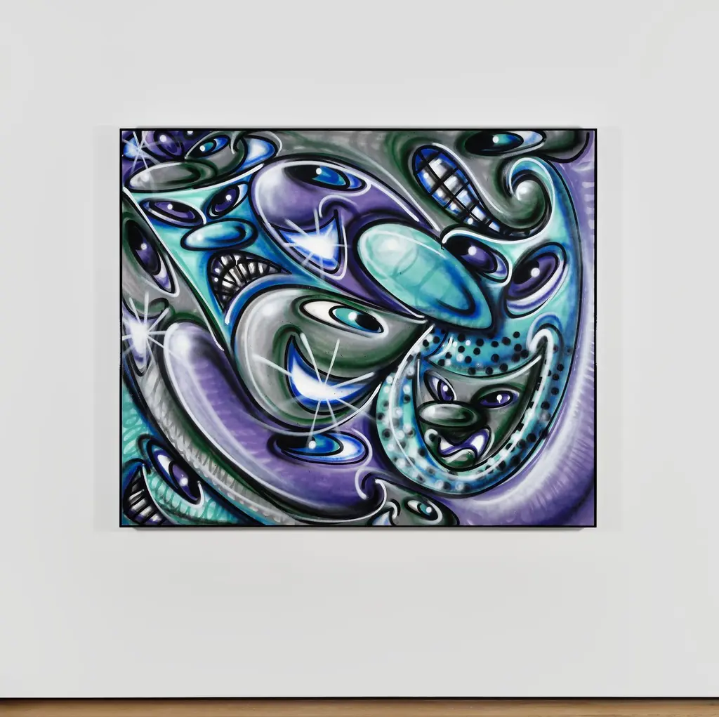Freek Z, 2020, Spray paint on linen with powder coated aluminium frame. © Kenny Scharf — Photo : Rebecca Fanuele. Courtesy of the Artist and Almine Rech