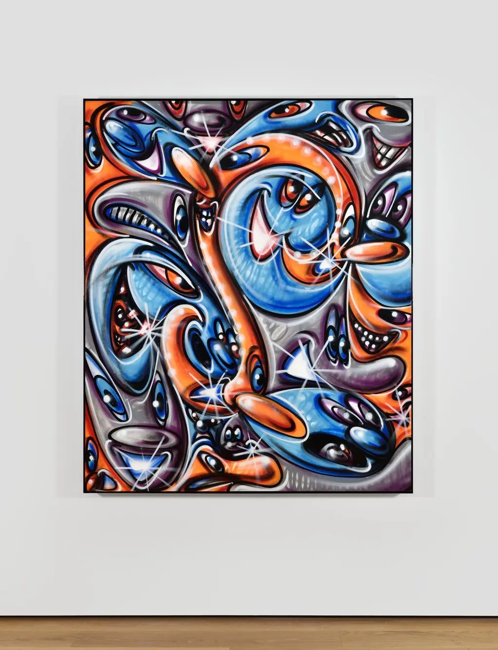 Blitch Blatch , 2021. Oil and spray paint on linen with powder coated aluminium frame. © Kenny Scharf — Photo : Rebecca Fanuele. Courtesy of the Artist and Almine Rech