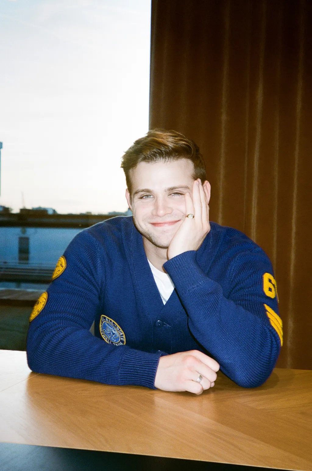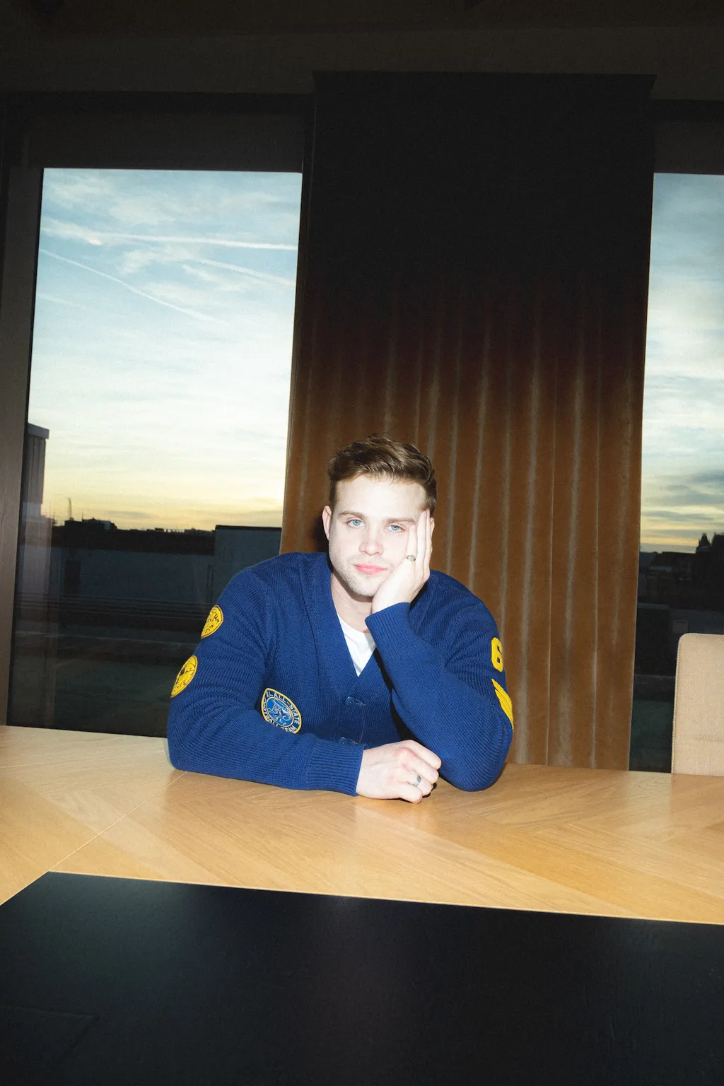 The sleepy-eyed, West London-born and North London-based Leo, 27, isn’t here to talk about the film, and also politely deflects discussion of his own romance with White Lotus co-star Meghann Fahy. But he will admit that it took him five auditions to land the part of Dexter, and that he only belatedly read the book, albeit with some help from Audible – “I’m quite a slow reader!” He also spills on filming that scene with his “uncle”, played by Tom Hollander, in The White Lotus. And, in his Ralph Lauren cardigan and chinos, Leo will gamely whip off his trainers to check and spell out the label on the sole. “These are.. Loo-bou-tin…”