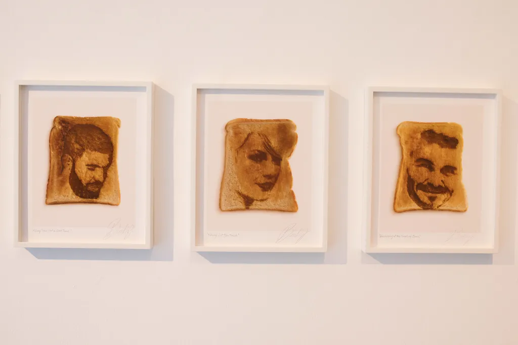 RIHANNA ’Since Sliced Bread’, KENDALL ’The Lips God Gave Me’, DRAKE ’A Long Time Not A Good Time’ and ARIANA ’Fuck My Life Superstar’ live within the titles of the 25 framed photos of celebrities on toast on display at artist, designer and skateboarder Blondey McCoy’s first London gallery show. Opening tonight at Ronchini Gallery, Mayfair, London the artist, designer and skateboarder’s exhibition titled Blondey: Stella Populis studies manifestations of super-fanaticism in both religion and pop culture, via the mediums of photography, digital illustration and installation. He’s releasing a new book too, Stella Populis. Pop Will Eat Itself, on sale tomorrow, published by IDEA books. Expect celebrities on toast, with a side of sausage and beans. Listen to Blondey talk through the artworks in the exhibition below.