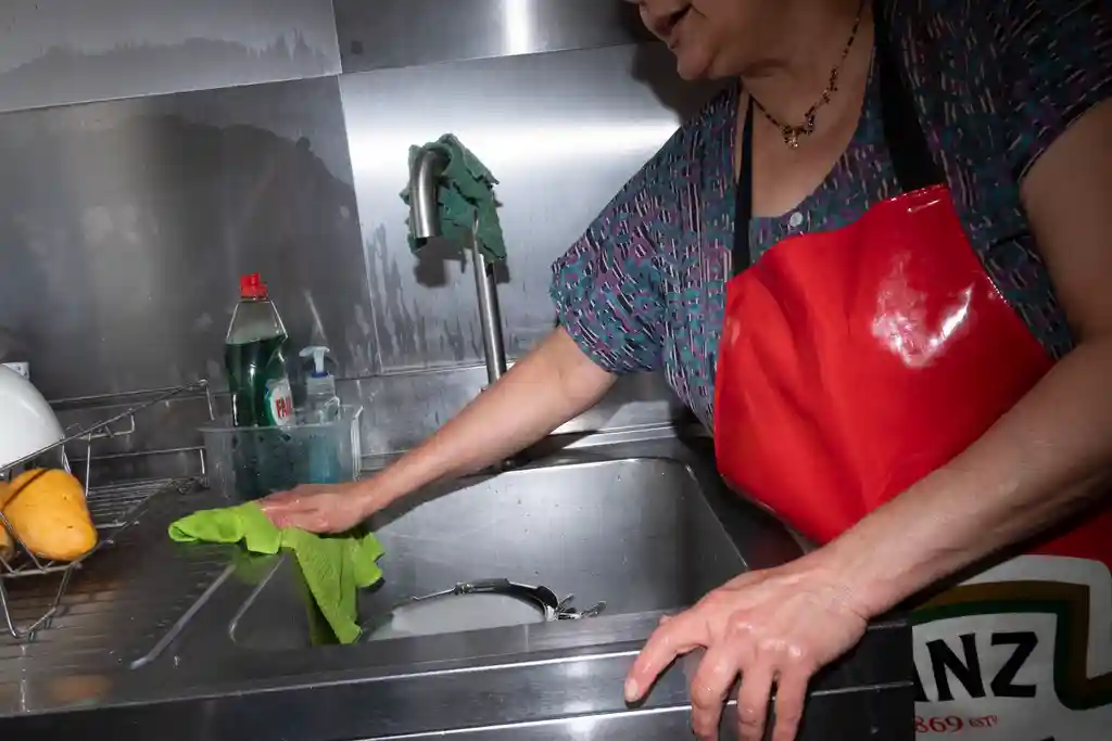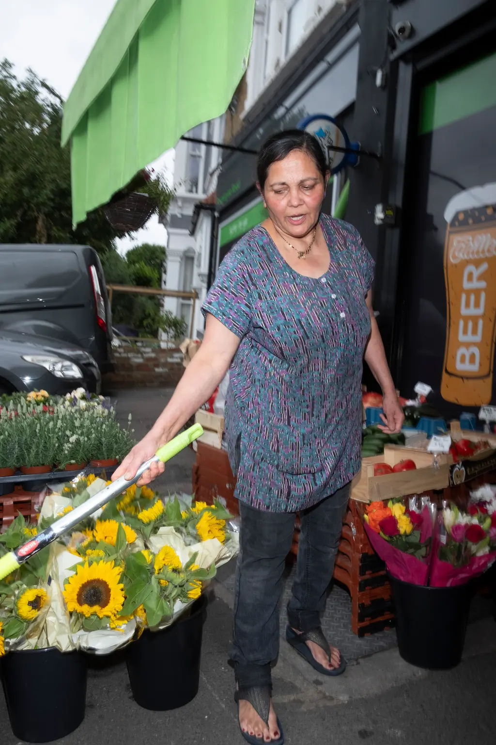 Anju sweeping outside the shop