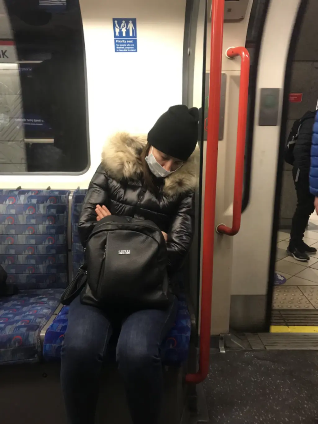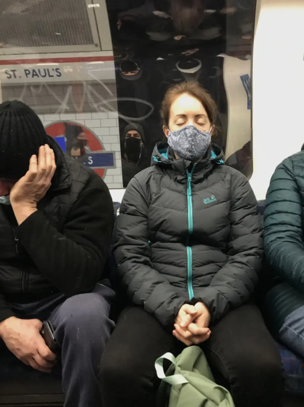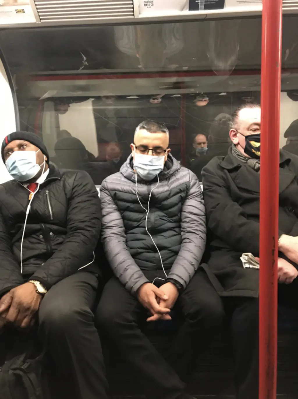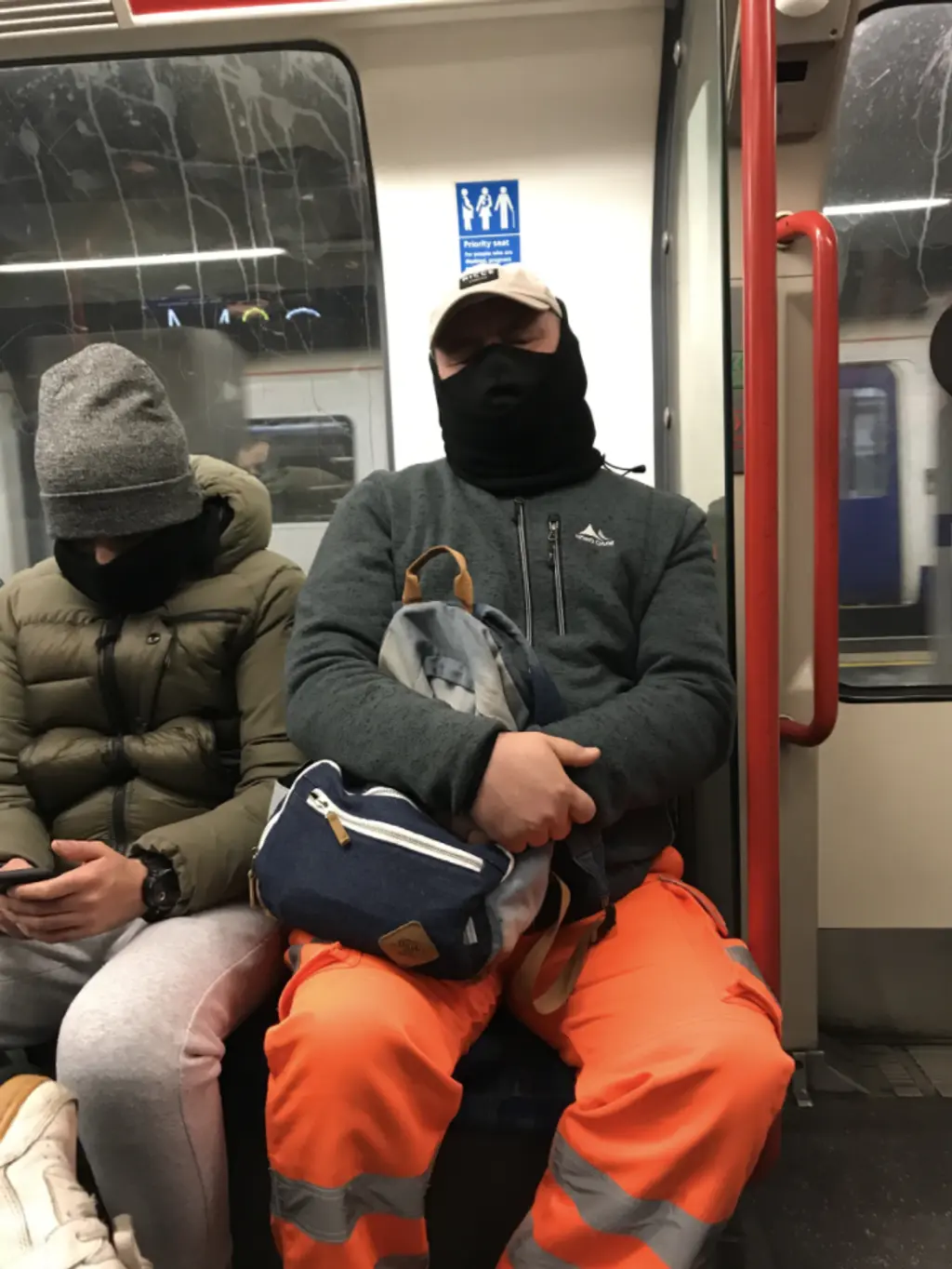 Over six months, starting in winter last year, Carter captured countless sleepers everyday, the rate only slowing once restrictions began to lift and the tube gradually got busier. Akin to his profession, Carter also found it was “mainly builders” occupying the tube over lockdowns, with masks generally “well worn”. “It would be quite unusual to see someone without one, particularly at the peak of lockdown when you’d really stand out,” he says.
