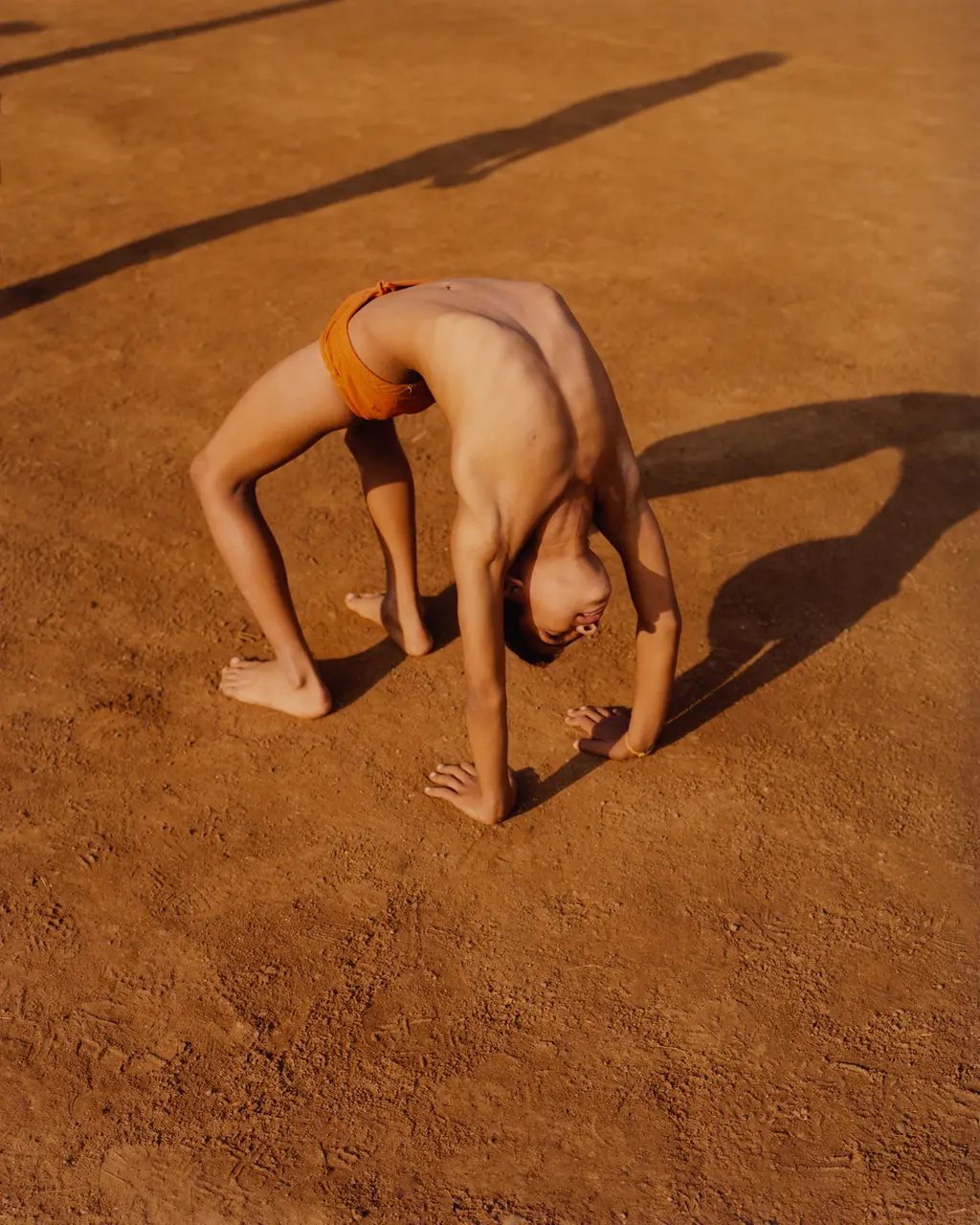 In his series, titled Mallakhamb, young men and women hold their body weight up from a thin wooden pole. The flexibility is mindblowing, with legs splitting mid-air and pike positions held from a rope. In some ways, it resembles yoga movements, which Vadoliya agrees with. “It’s very reminiscent of what we recognise in the Western world as yoga, but there’s something a bit more deep-rooted and inherently Indian about it.”