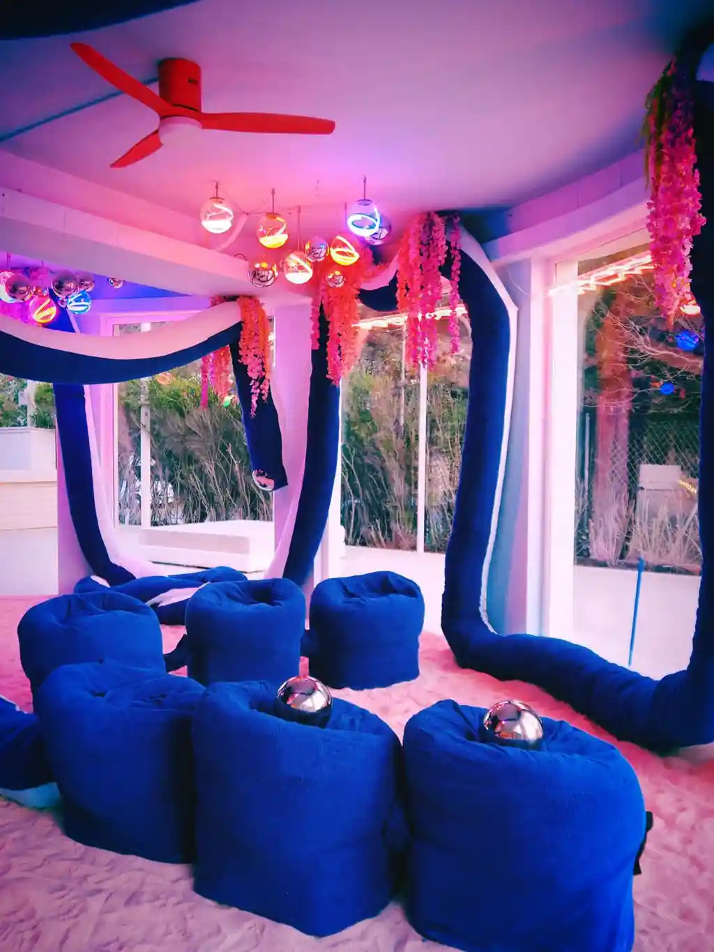 For now, we can live vicariously through Spanish artist Miranda Makaroff’s immersive art installation, The Octopus Visit, which she created to celebrate the opening of El Silencio, a brand new bar and hangout for global creatives tucked away from San Antonio’s bustling sunset strip.