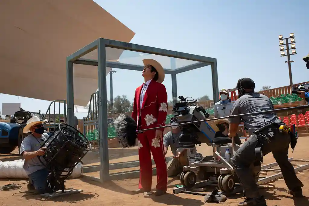 When I ask Steven Yeun to sum up that vision, the actor exhales, laughs and (I imagine) considers his immediate surroundings as we speak on the phone, in a publicist’s office at the Los Angeles HQ of the makers of Nope, Universal Pictures. Then the Seoul-born American actor, who broke through in hit zombie series The Walking Dead and was Oscar-nominated for his lead role in A24’s Minari (2020), answers with a question: “Do you mean the meta of the film, or the film itself? There’s so many layers that we could go after!”