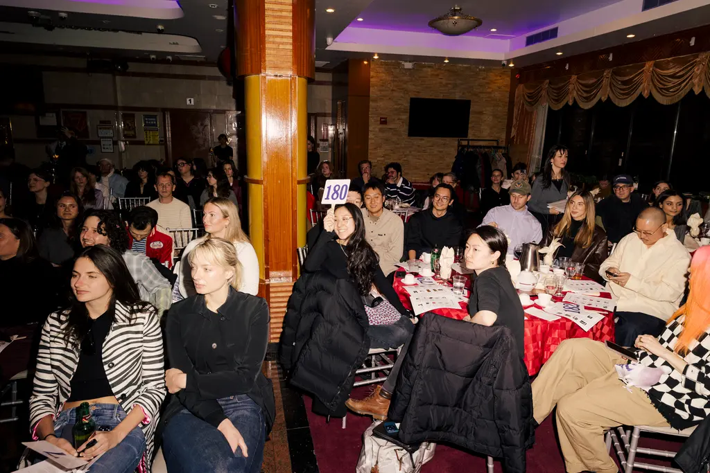 The auction took place at Golden Unicorn, a dim sum banquet hall in Chinatown where the lights are always a little too bright and everything feels stuck in permanent mid-brunch mode. To get inside, guests passed through a carpeted lobby replete with mirrored panels, artificial flowers and plastic-covered chairs. An attendant stood by idly until a crackle from above — via walkie-talkie — cued them to usher us into the elevator.