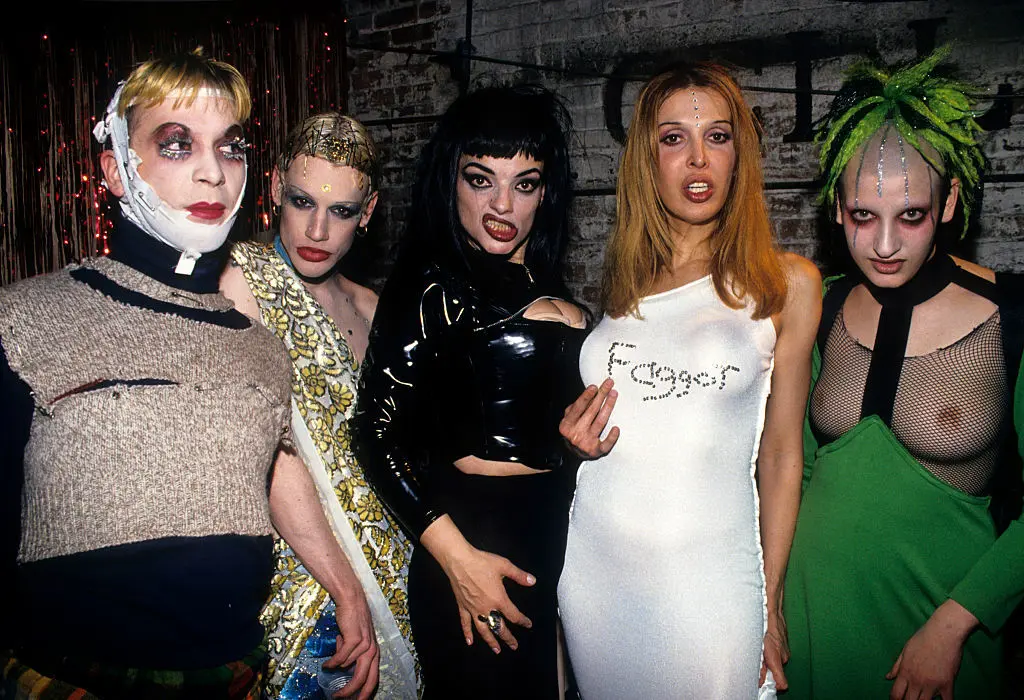 Michael Alig, Richie Rich, Nina Hagen, Sophia Lamar, and Genetalia at Tunnel Club, New York, December 31, 1993. Courtesy of Getty Images.