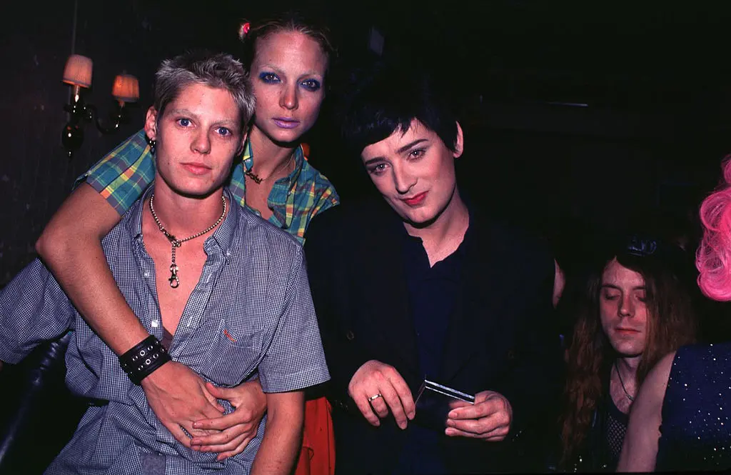 Rachel Williams, Alice Temple & Boy George at Tunnel, 1995. Courtesy of Getty Images.