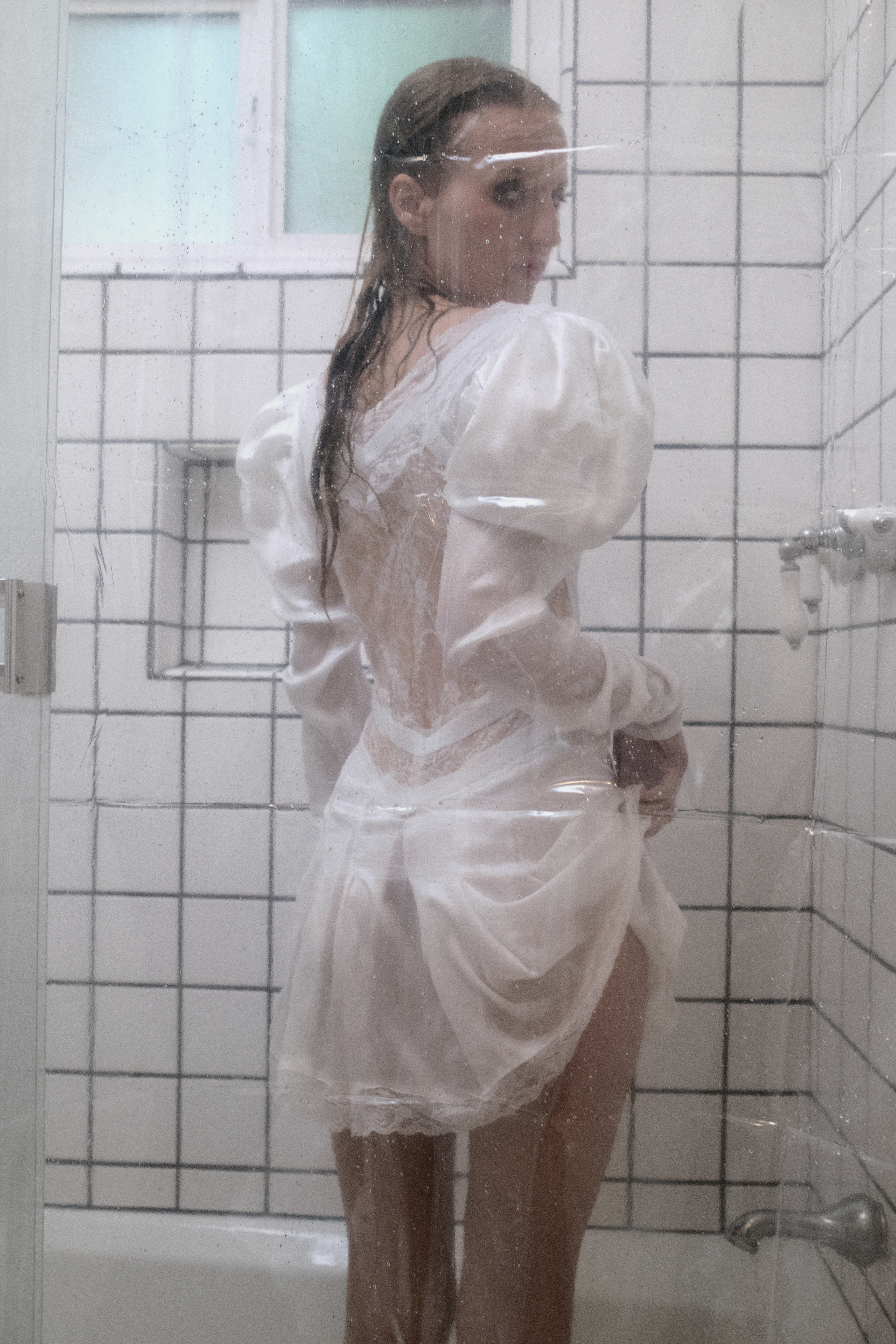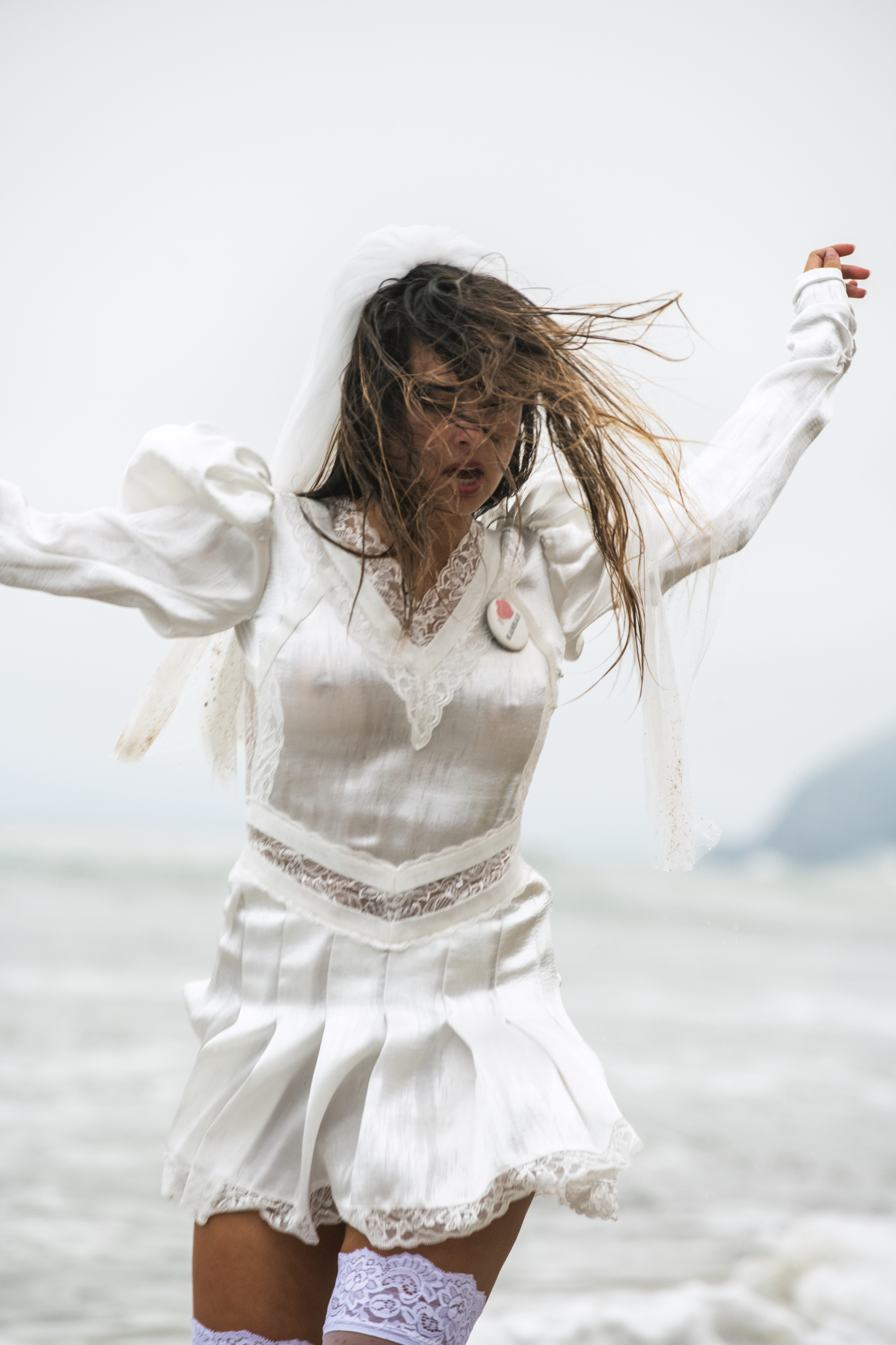 Petra: I was listening to a lot of summer break playlists, watching vintage wedding footage on YouTube and summer slasher movies, reading Daddy by Emma Cline and Blythe [doll] fashion books. Mimi and I looked at so many different wedding dress styles, while trying to figure out what the perfect summer break outfit would be and what level of unhinged we could take that to.