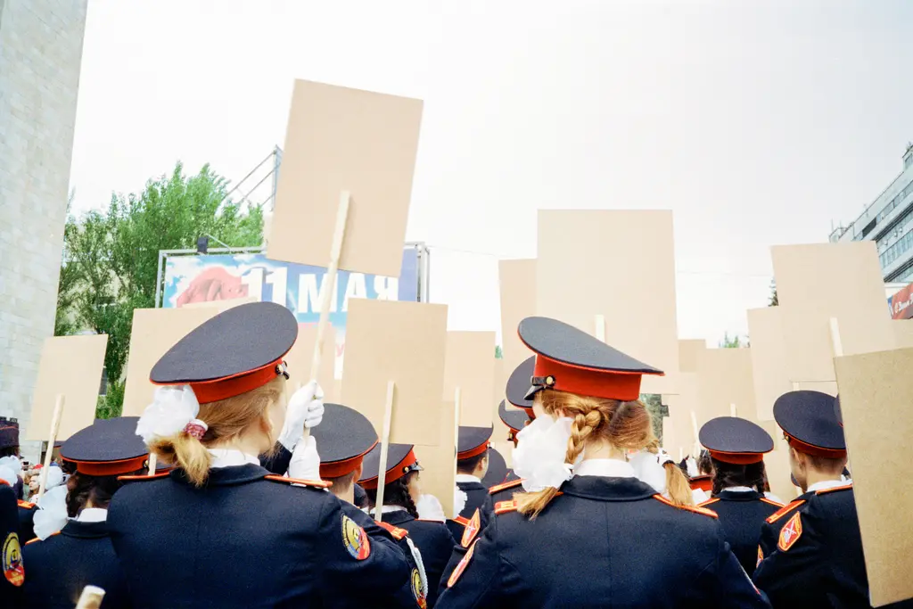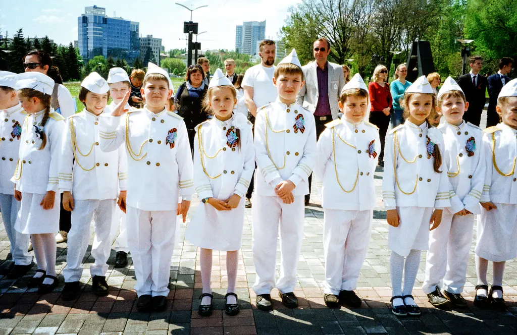 Then, soldiers marching: “Most of the military images are pro-Russian soldiers,” Kagermanov says of photos that contrast with that youthful lust for life.