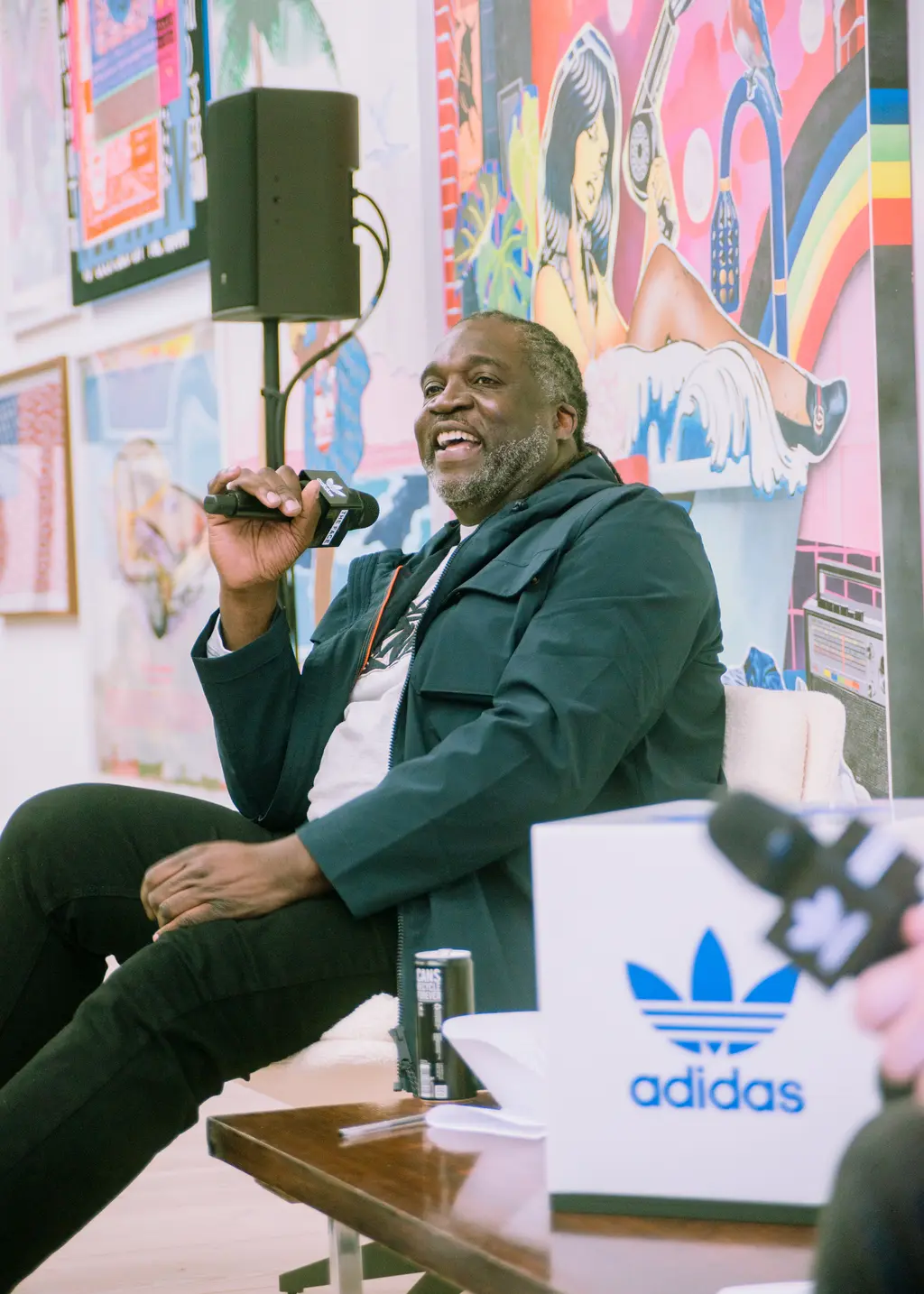 He was joined by Roger Gastman, a world-renowned curator, cultural historian and founder of BEYOND THE STREETS. Over the last few months, THE FACE and adidas have been celebrating its London edition with a series of multi-layered workshops and discussions, taking place in its many exhibit rooms at Saatchi Gallery. Prior to last night, we’d already hosted longtime adidas collaborator Lawrence Watson, customised adidas Originals pieces with Alfie Kungu and spun records with Eliza Rose, inviting THE FACE readers to join us.