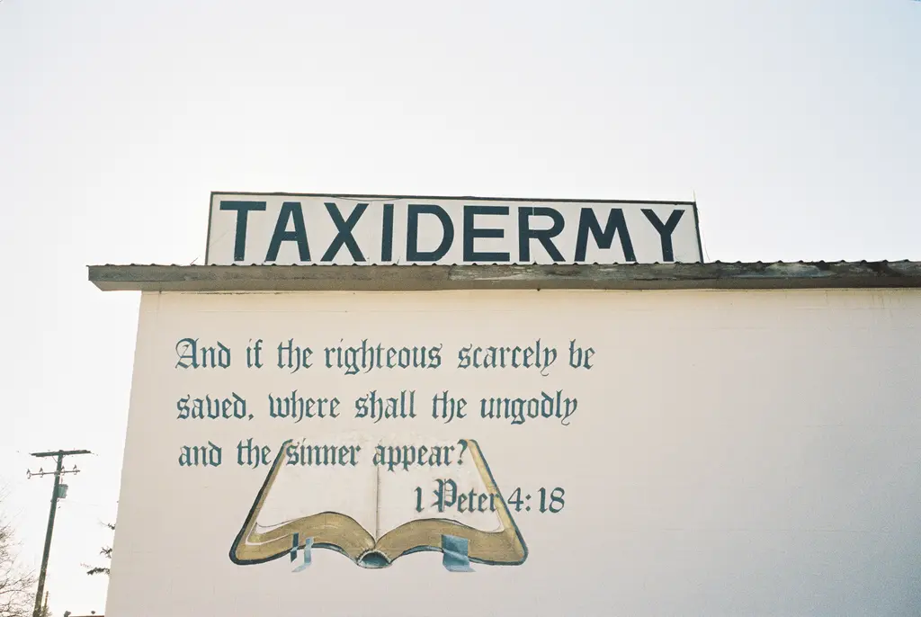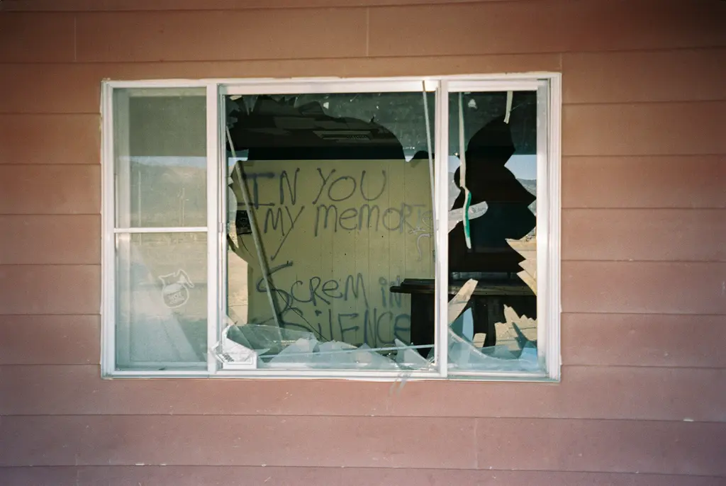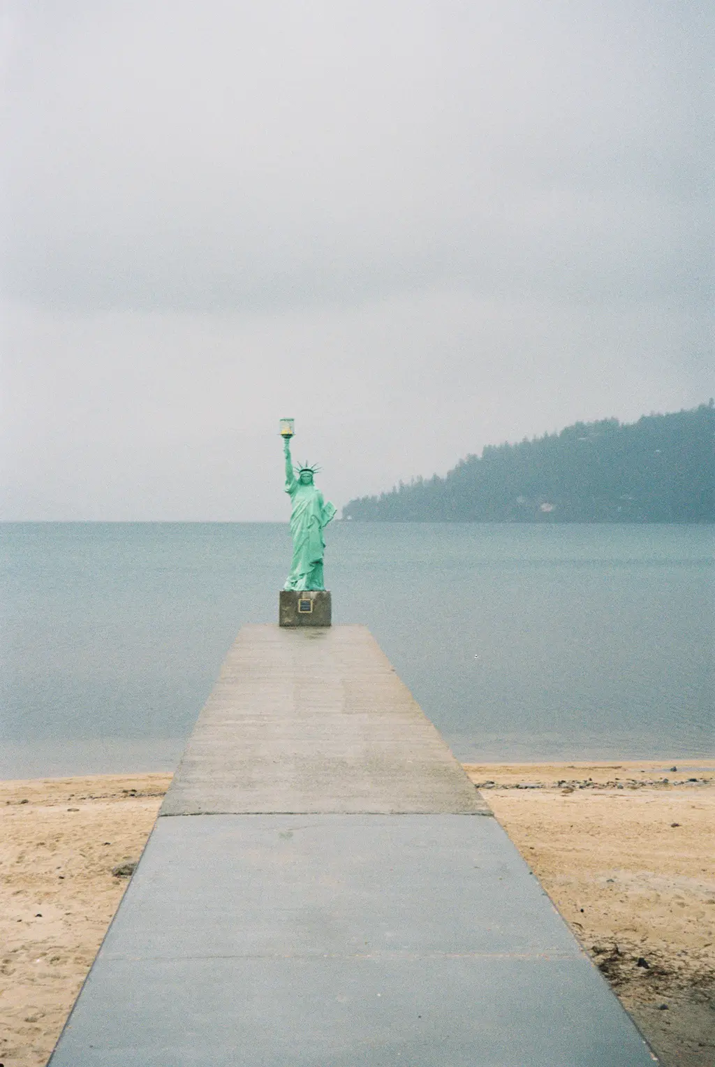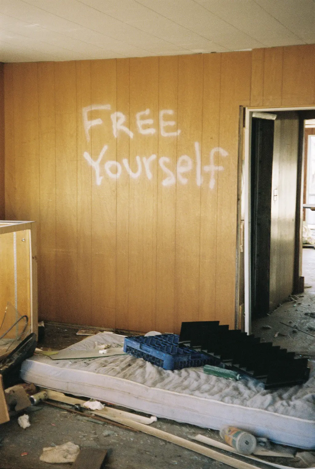The trip became the basis for Free Yourself, a ghostly photo story captured on a medium format and two 35mm cameras, from mid-August through to December of last year. In the series, a replica Statue of Liberty stands at the end of a pier, the interior of an abandoned home scrawled in graffiti lies in decay, and surreal relics of human contact are presented in scratched out messages, Bible verses and signs ordering you to “screm in silence” [sic]