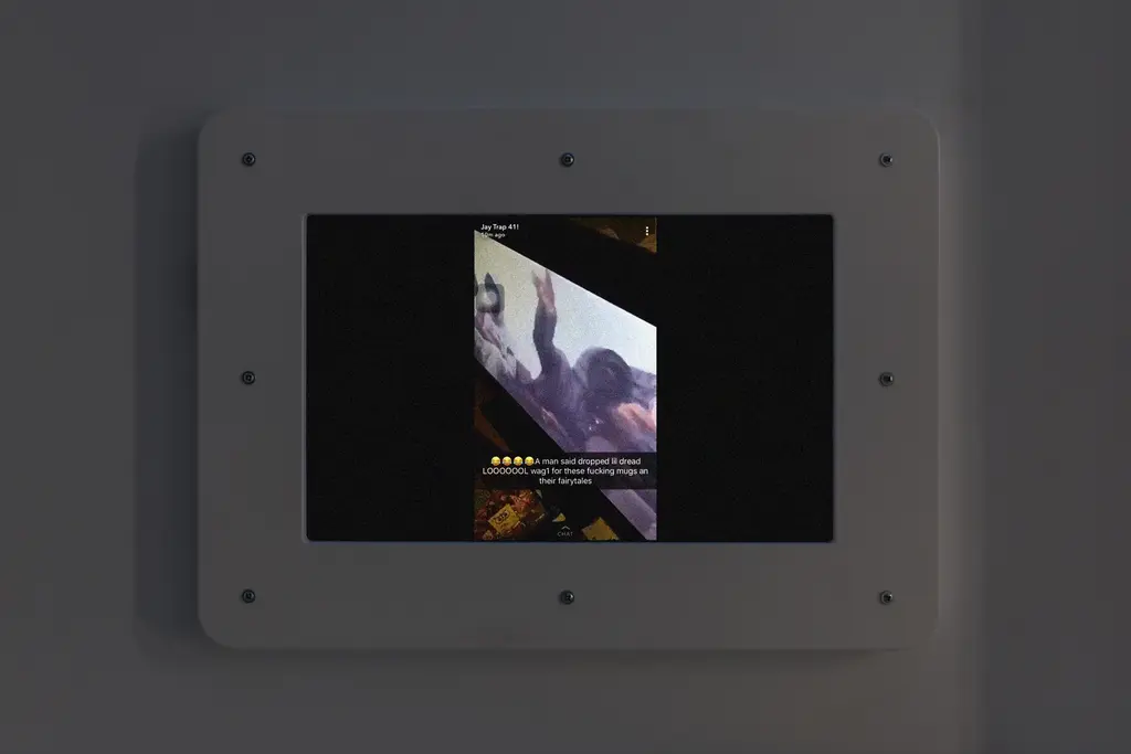 It’s an addressing of the good, the bad and the ugly that is consistent with R.I.P. Germain’s broader work. Take, for example, his recent, gun-wielding ghoul, What Does A 🧢 A 🏆 And A 🎣🥣 Have In Common? (2025), which showed as part of Rose Easton and Ginny on Frederick’s group exhibition, Yay, to have a mouth. Or works such as the Tyson series (2018), a set of UK drill karaoke videos that viewers can sing along to while accompanying visuals depict the lyrical content. Both refuse to hide the horrifying aspects of the scenes they also venerate.