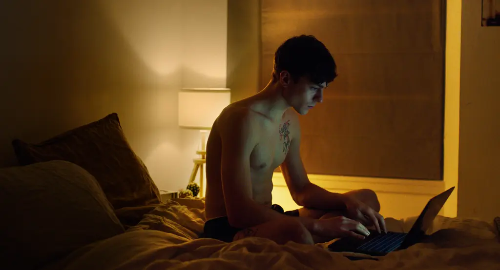 Mikko: I wanted to craft a portrait of a character, a young queer guy in London, for whom sex work is a choice rather than the last resort that it’s too often been depicted as. I wanted to make a film that looks at what physical sex work that’s facilitated by online platforms looks like for a young gay man in London in 2024, in a frank but non-judgemental way. It was important to show sex work from a sex-positive perspective, as a valid choice, as something that can also be empowering. It doesn’t need to be seen as traumatising or something that’s pursued as a consequence of trauma.