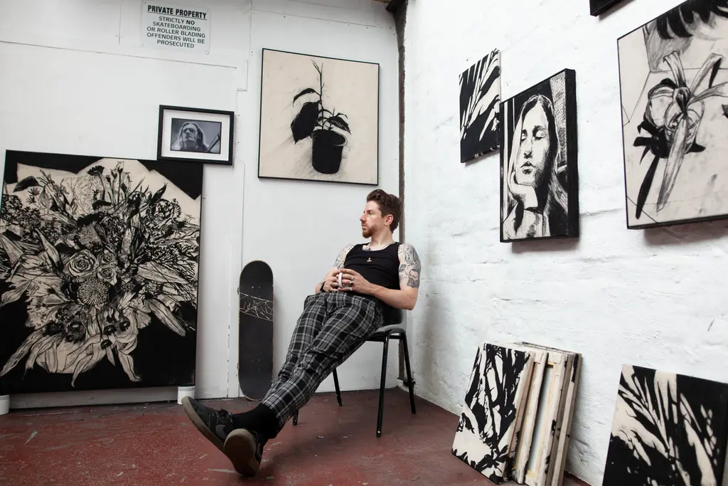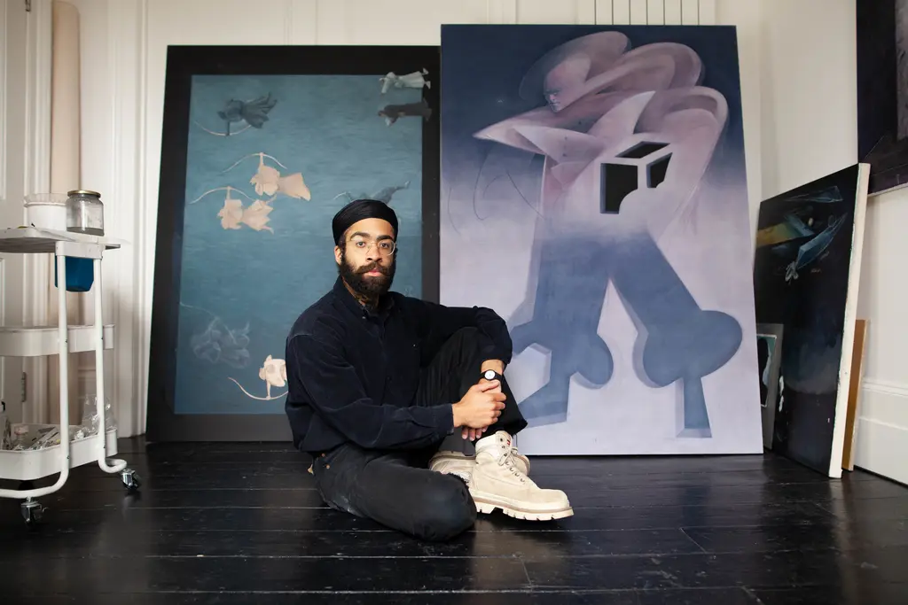 Since 2020 Davies has spent time with more than 200 artists around the country. He travelled from the south of England to the north coast of Scotland, determined to thoroughly document the best of Britain’s artistic talent. The result: a sprawling archive of Bright Young Things, from Elsa Rouy’s subversive takes on sex, motherhood and femininity to Trackie McLeod’s nostalgia-fuelled explorations of Scottish patriotism, via Christian Quin Newell’s sci-fi-esque canvases.