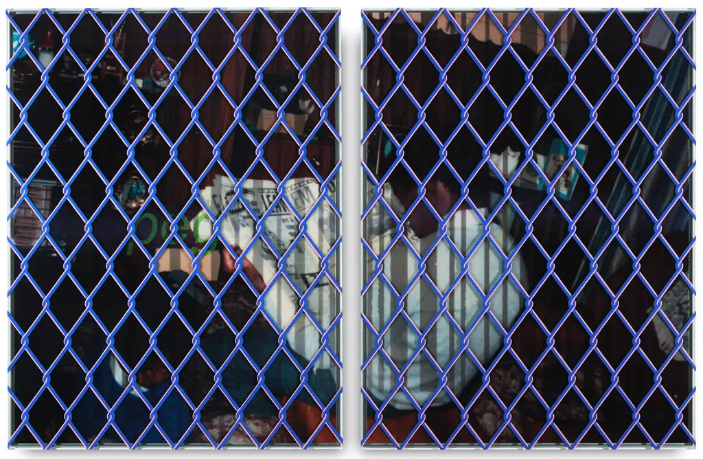 It formed themes of exclusion throughout the work, with Barclay using barcodes and fences to obstruct the viewer’s sight. “I started thinking about public schools and the types of gentlemen that came through those schools,” he says. “It created a hierarchy of individuals that was exclusionary.”