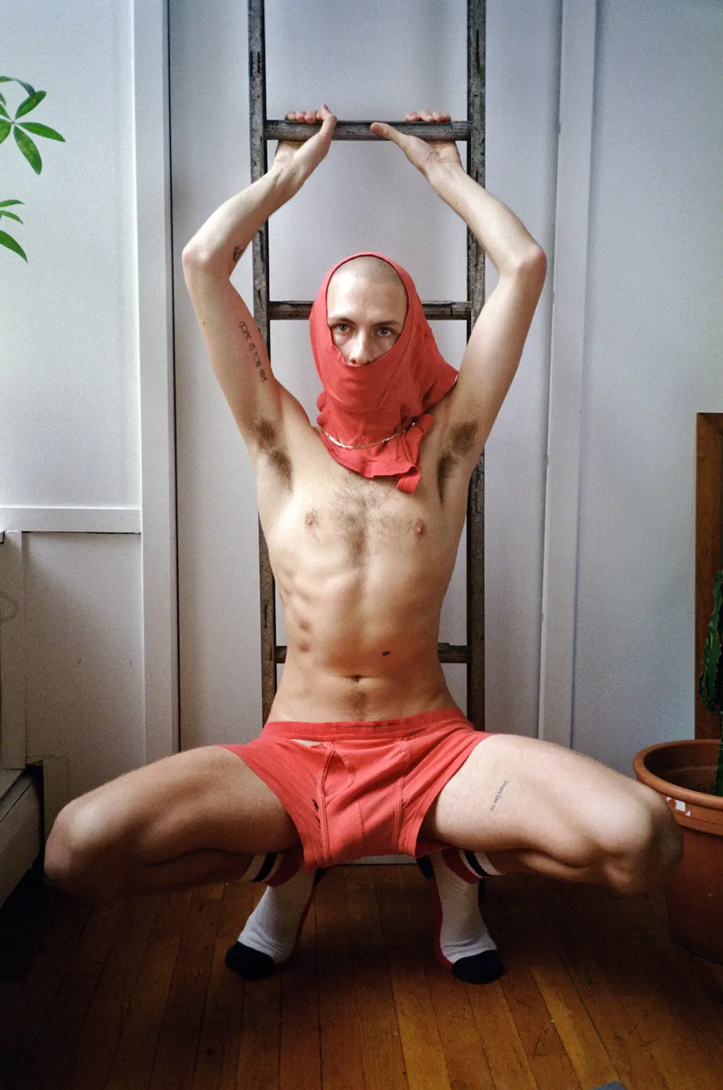 His first book Lost Boys (2006) was a raunchy portrayal of Eastern European men, with some images bordering on the pornographic. With shaved heads, black combat boots, hard-ons and sweaty biceps, it was a raw, unfiltered commentary on masculinity via the world of fetish. “I was always interested in radical, transgressive expressions of human nature and sexuality,” Mogutin says. “For me, kinks or fetishes are way more inspiring than plain nudes. I find people in uniforms, fetish gear or bondage more compelling and visually stimulating than fully nude models.”