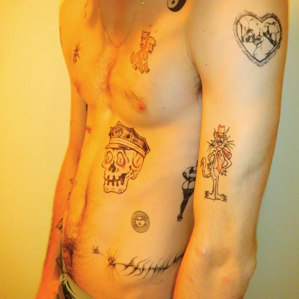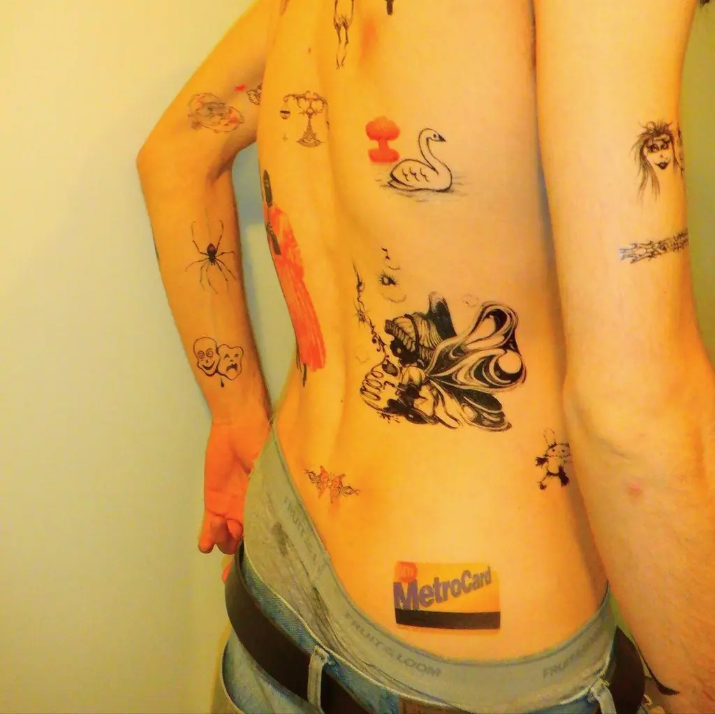 For the project, the 21-year-old rallied friends and fellow artists, such as Zora Sicher and Ibuki Sakai, alongside heavyweight New York City tattooists, Will Sheldon and Keegan Dakkar, asking them to create 18-pages of bespoke temporary tatts, all ready to be peeled off, slapped under a damp cloth and paraded around.