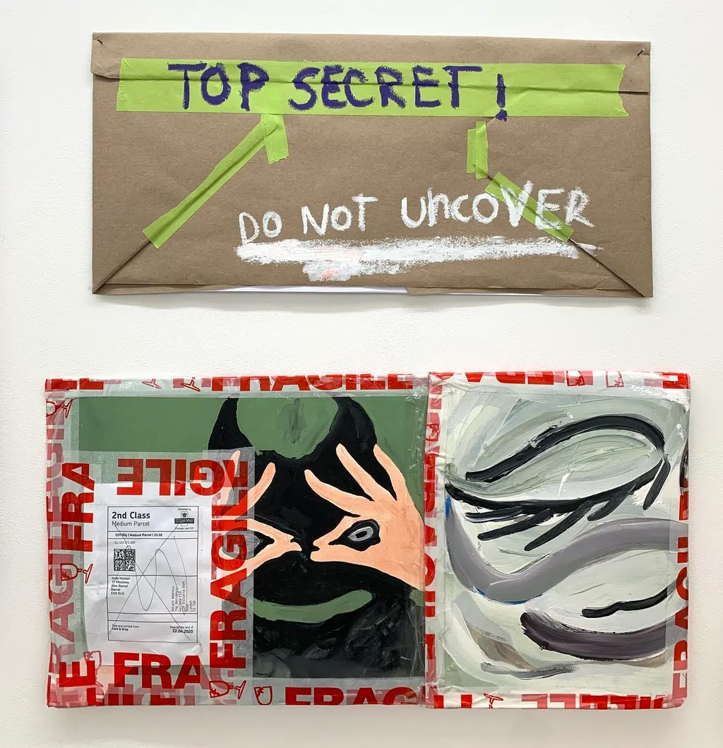 Influenced by the history of mail art from the works of collagist and early pop artist Ray Johnson, to the work included in the 1993 mail art project Imprint 93 – featuring then emerging artists Jeremy Deller, Martin Creed and Peter Doig – Lesson and Welsh set up a postal service for artists to send their work, resulting in The Correspondence – an exhibition of paper works exchanged via post by 18 artists throughout lockdown.