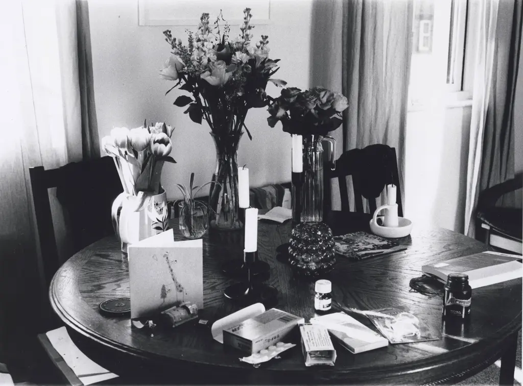 The latter shot is on the cover of The Domestic Stage. The image is a reference to Carrie’s Kitchen Table series from the ’90s, where the artist staged an intimate fictional drama in black and white – she sometimes played its smoking, laughing or sighing protagonist. Other times she was a partner, a mother, or a friend.