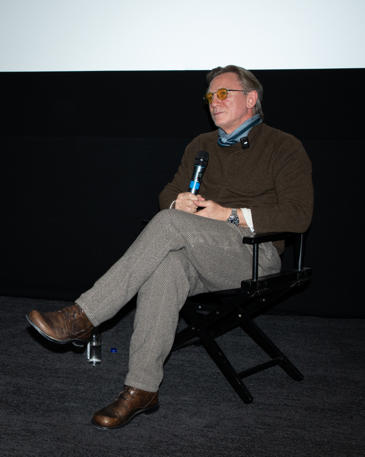 Daniel Craig – in brown boots, tweed trousers, wintry knitwear and a jaunty neckerchief – took to the stage (well, floor) for a post-screening Q&A. The actor was on passionate form as he answered questions about his portrayal of William Lee and his ecstatic, obsession-fuelled relationship with Allerton (Drew Starkey) in 1950s Mexico; the character’s elegantly dishevelled styling; and his and Drew’s embracing of full dance choreography to portray an Ayahuasca trip in a standout scene.