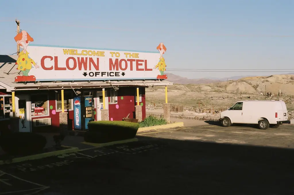 In the desert, two hundred miles outside of Vegas, is a Clown Motel where patrons come from far and wide for a good scare.
