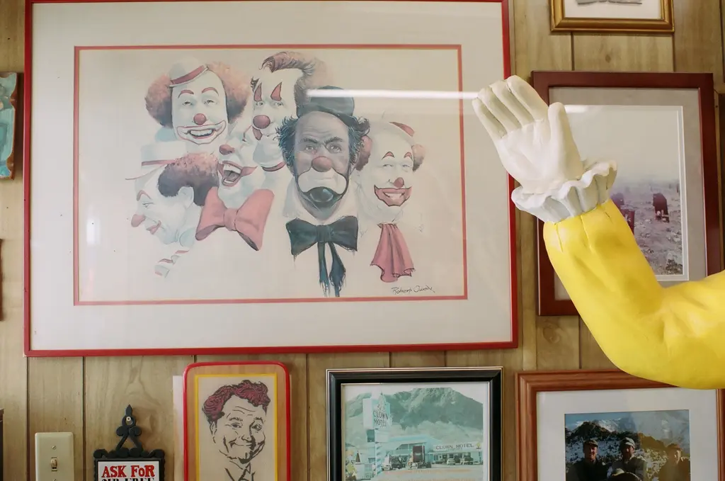 The lobby houses 700 clowns of every sort – porcelain figures, stuffed dolls, oversized Ronald McDonalds and glass collectibles. Perchetti has workshopped the Clown Motel into a destination for adventure-seekers and clown-curious tourists. They get the opportunity to overnight in the brown-carpeted rooms, lie in beds with polyester floral sheets, and admire the clown portraits which hang above the beds as a creepy reminder that this is, indeed, the Clown Motel.