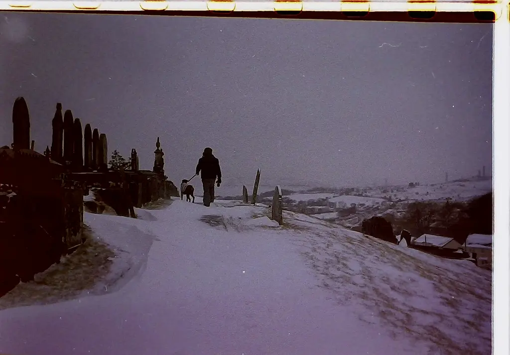 And so Harris started working on a photography series of the same name. Hiraeth pays homage to teen angst, fleeting friendship, getting up to no good and making art when there isn’t much else going on. It’s filled with melancholy, lo-fi snaps of teens messing around in the countryside and images of sedate Welsh landscapes – eerie, snow-covered gravestones and dog walkers braving the elements. Everyone loves a bit of nostalgia in January, right?