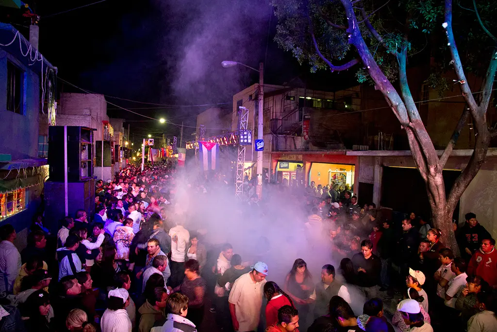 I very much like the sound system parties in the streets in Mexico City, where that feeling is even more intense: standing at a street corner, the street filled with the people from the neighbourhood, very loud cumbia music out of lined-up sound equipment and all of this in the middle of a city with a population of over 20 million people!