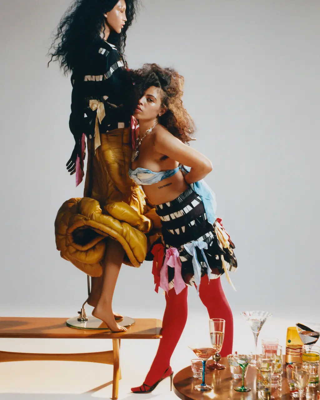 Aaliyah wears bandeau CGVONPLATEN, skirt SUPERYAYA100, tights FALKE, shoes GINA FOR ANDREAS KRONTHALER FOR VIVIENNE WESTWOOD and necklace REBEKAH BIDE