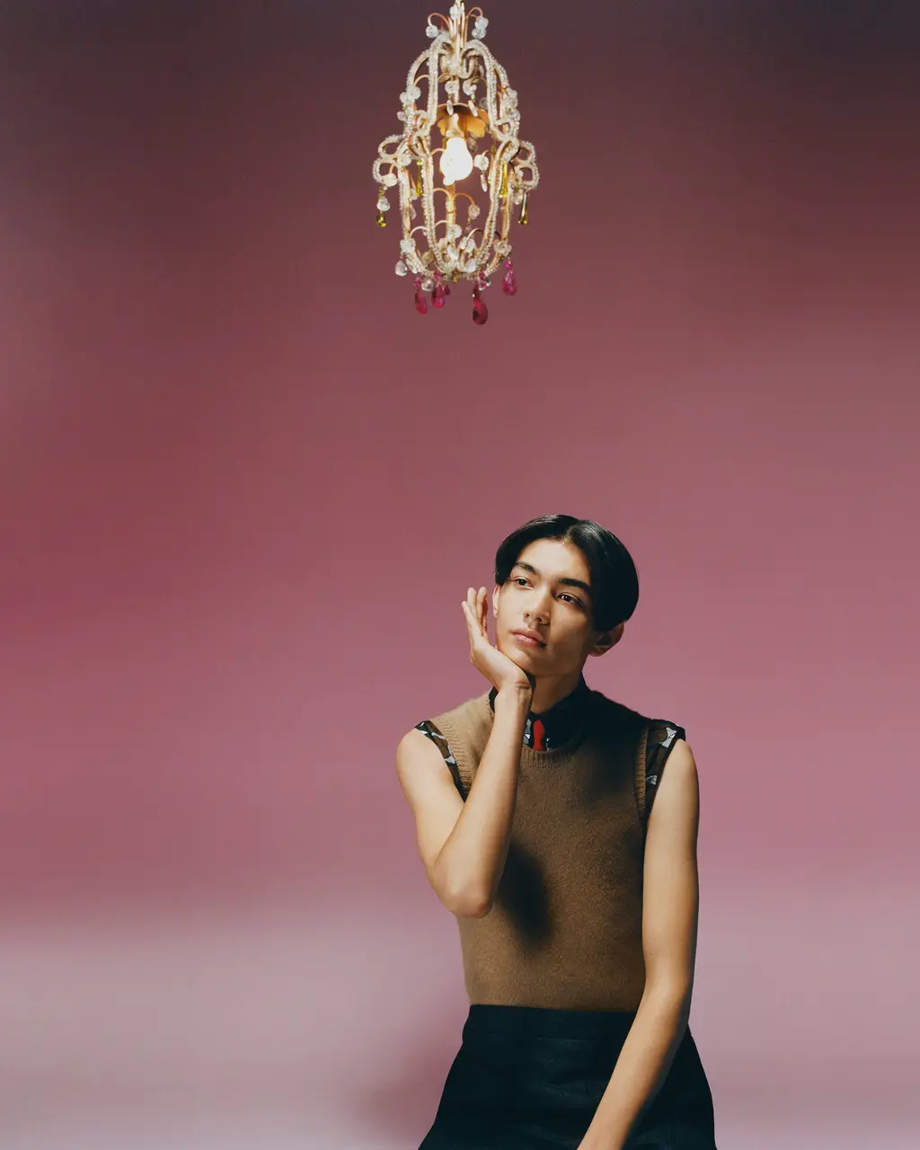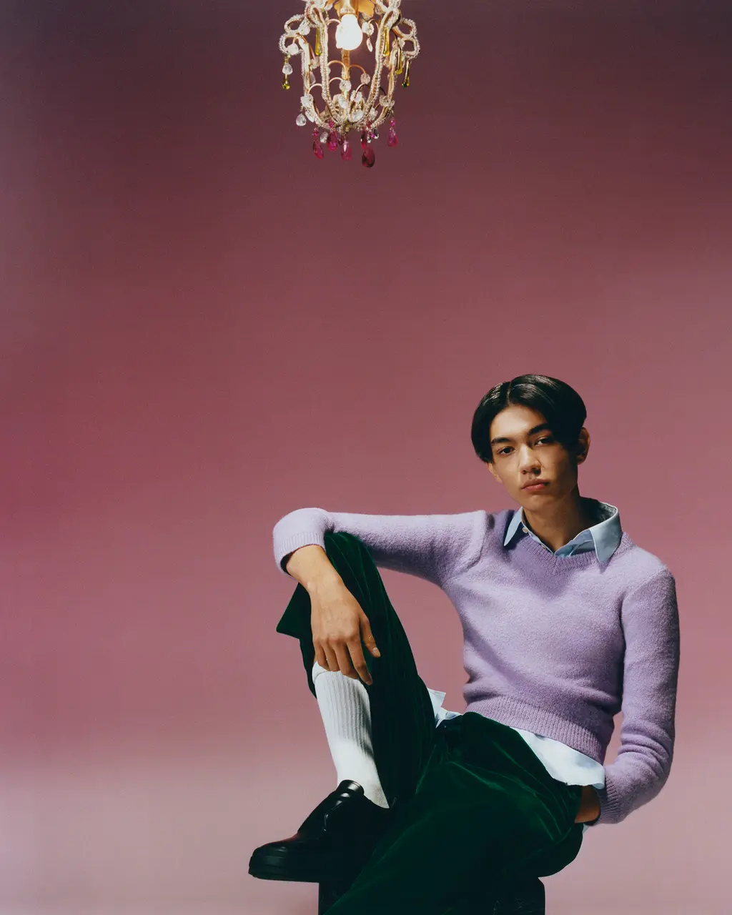 William wears shirt, jumper, trousers and socks GUCCI and shoes PRADA