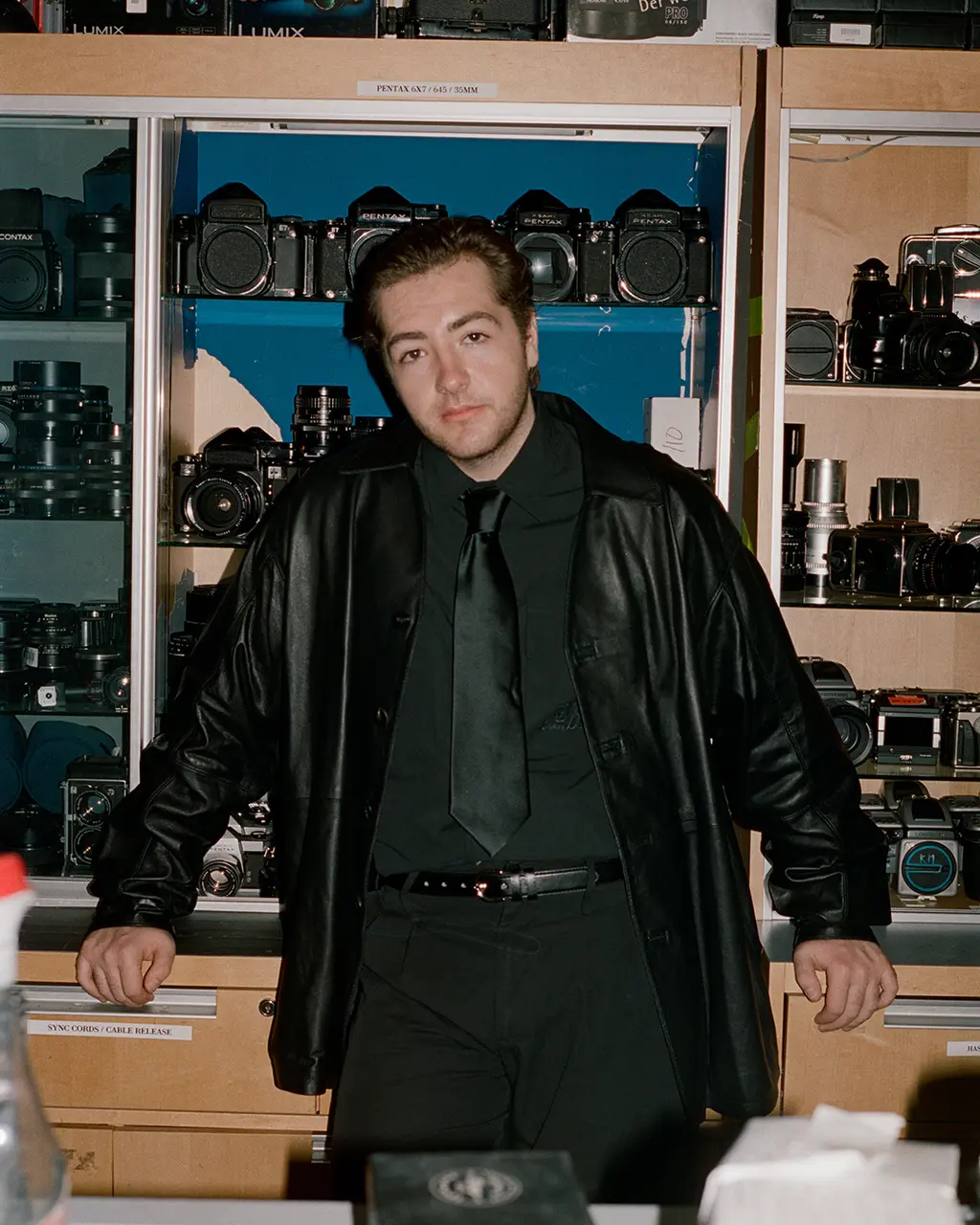 Michael wears jacket and trousers MARYAM NASSIR ZADEH, shirt NANUSHKA and tie stylist’s own