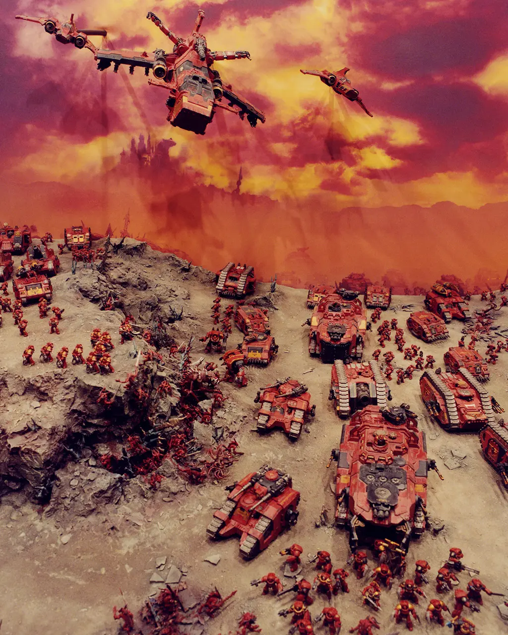 Ah, Warhammer World: a vast haven for Warhammer heads situated on an industrial estate on the outskirts of Nottingham. Flanked by a giant space marine statue and lifesize tank, it features an events hall, exhibition centre (displaying more than 20,000 miniatures) and a restaurant in which hungry players can purchase Duardin-flattened Aelf Cakes or Ogor’s Feast Breakfast. That’s American pancakes and a full English to me and you.